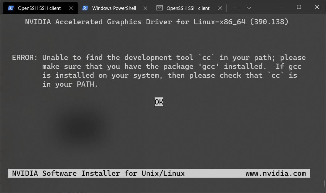 오류: 경로에서 개발 도구 'cc'를 찾을 수 없습니다. 'gcc' 패키지를 설치했는지 확인하십시오. 시스템에 gcc가 설치되어 있다면 'cc'가 PATH에 있는지 확인하십시오. |