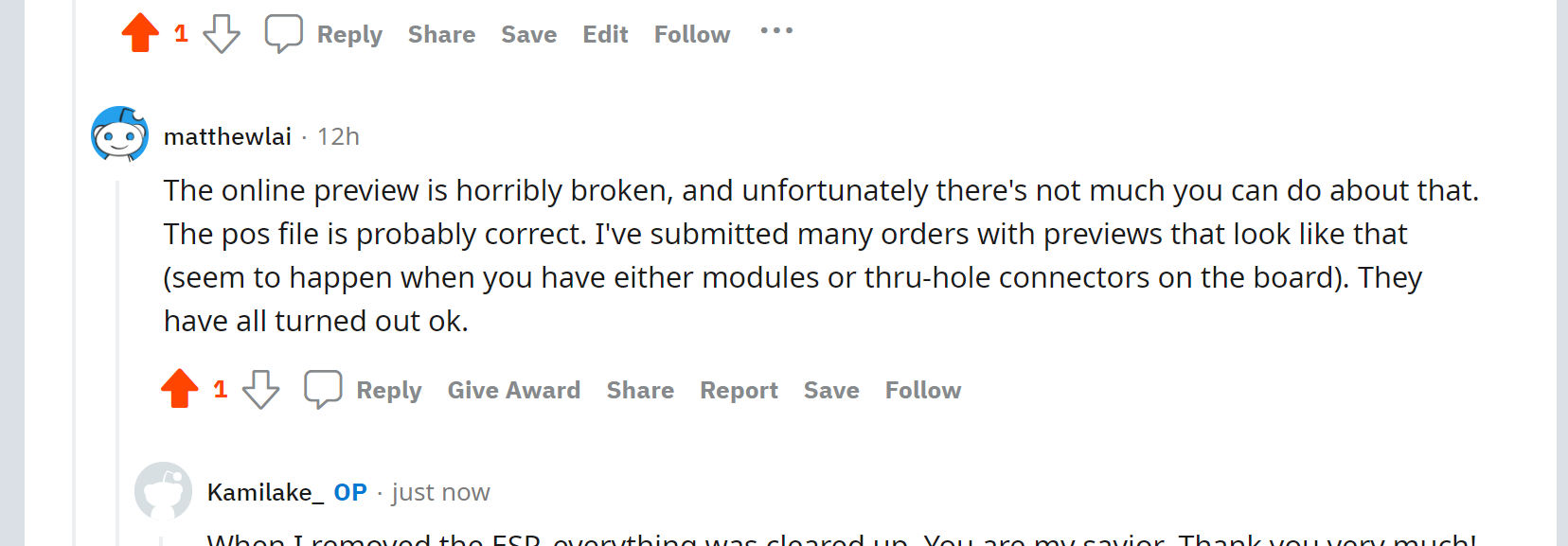 (2022-08-13 추가 -> JLCPCB 미리보기 문제는 새로운 렌더링 엔진이 들어오면서 대부분 고쳐졌습니다.)