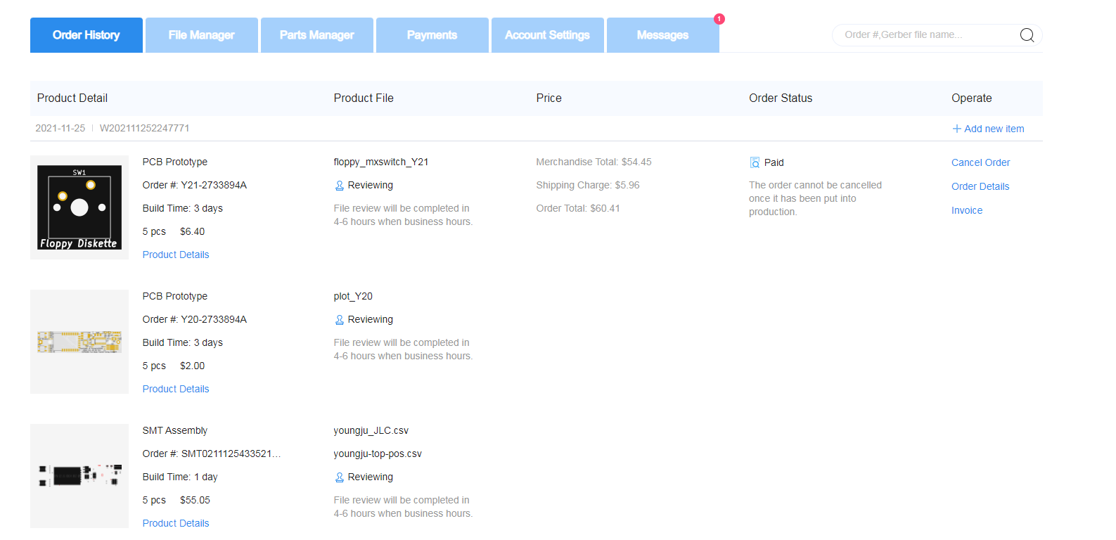 주문하는 김에 지인의 PCB와 합배송을 신청했습니다.