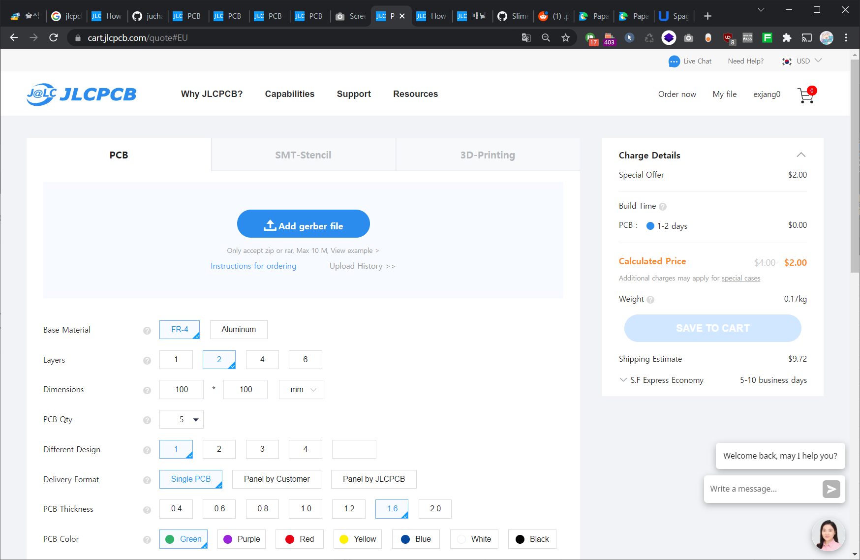 PCB 기판을 JLCPCB를 통해 주문하겠습니다. 모든 게 끝난 것 같아서 차차 주문해보려고 합니다.