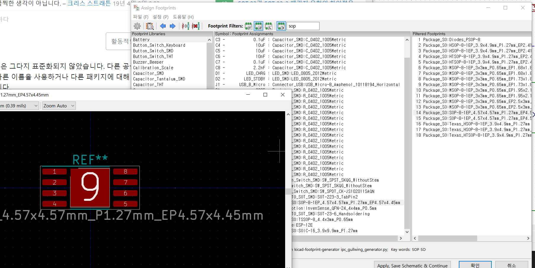TP4056은 SOP8 SMD 패키지로 알고 있는데 회로도 풋프린트를 보러 가야겠습니다.