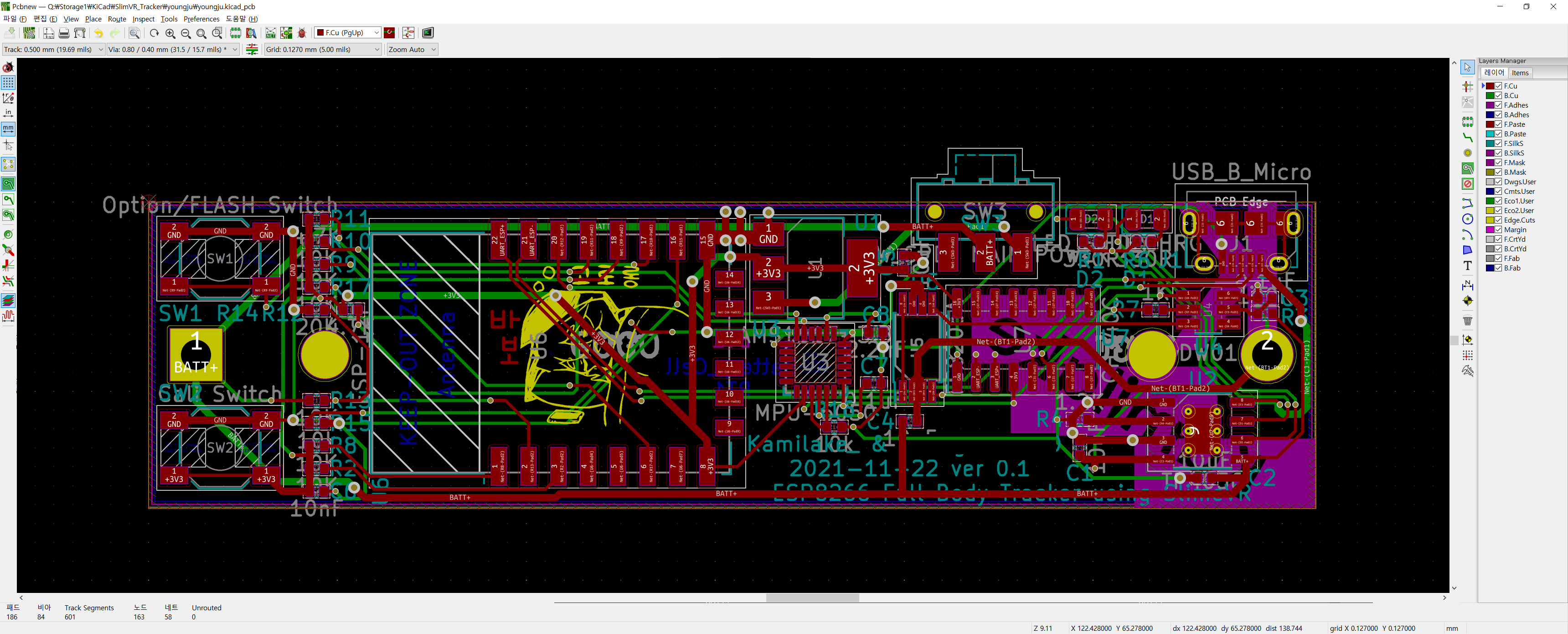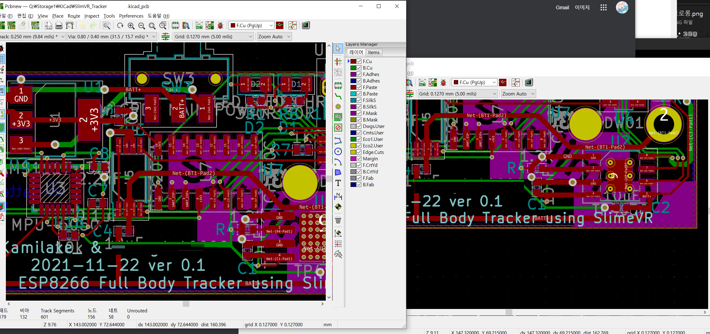 SlimeVR 트래커 PCB 제작 11월 26일 (풋프린트 실수)