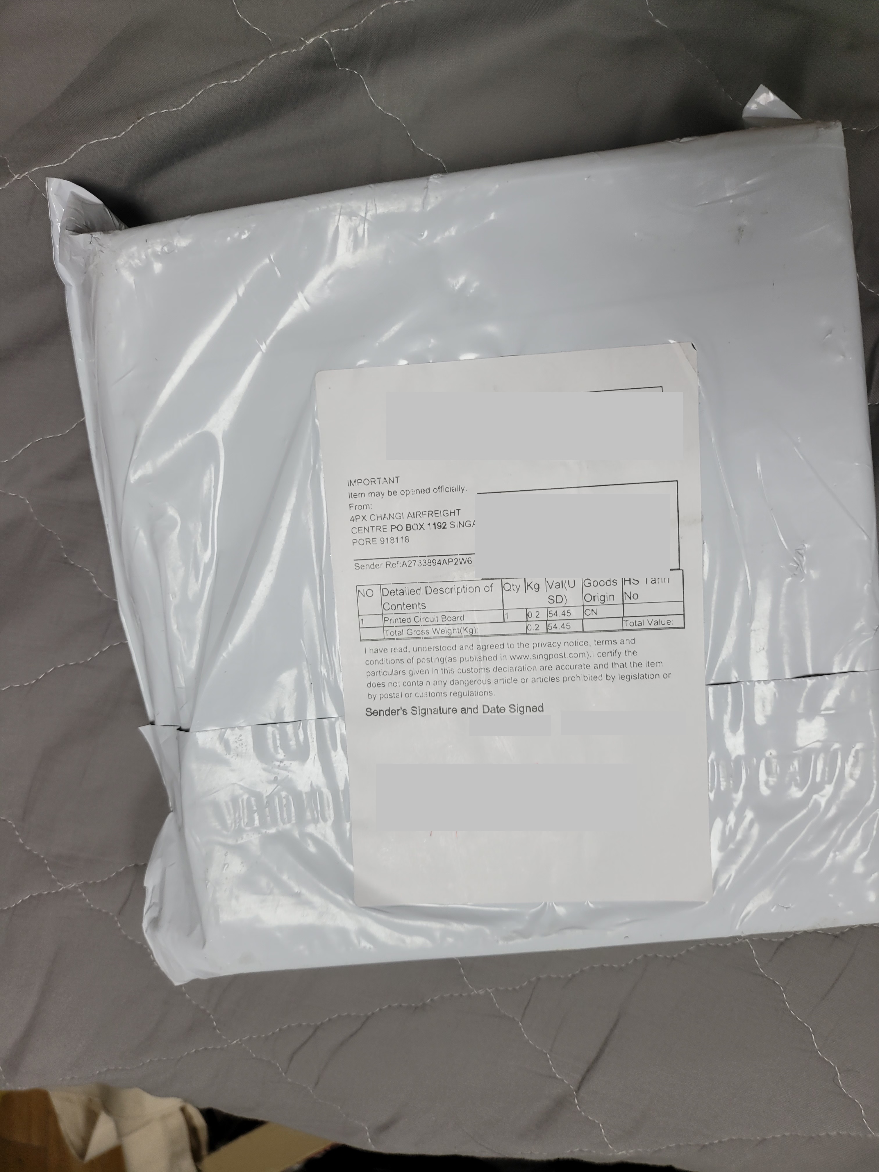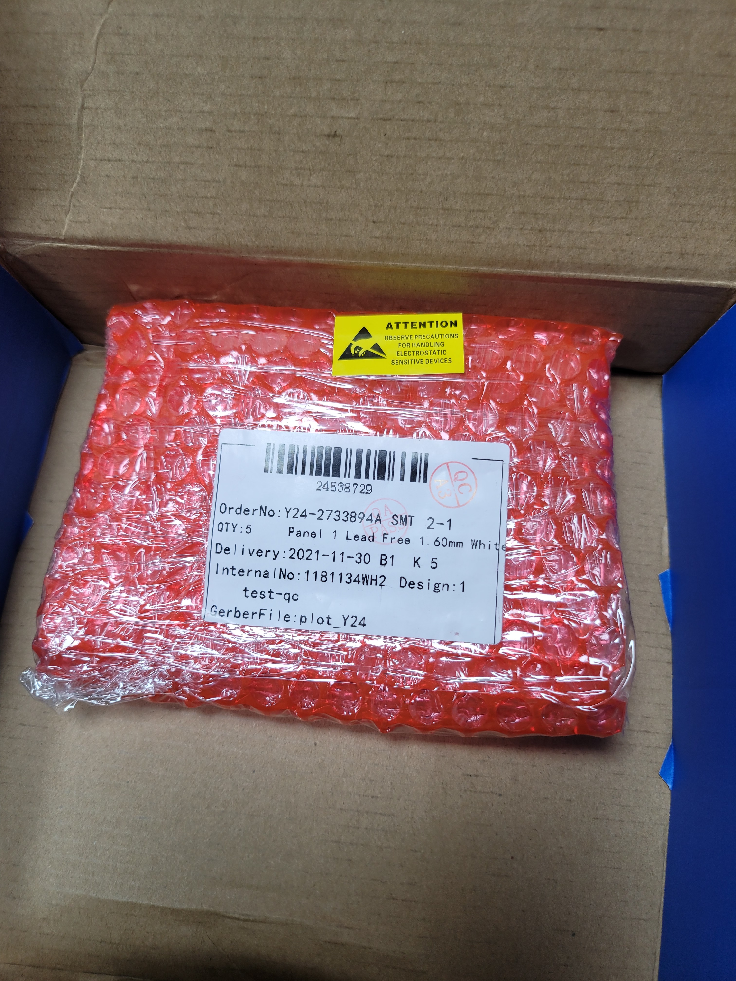 조립하지 않은 PCB는 진공포장으로, SMT 조립된 PCB는 랩과 에어캡으로 감싸서 배송되었습니다.