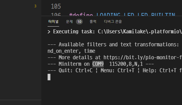 성공적으로 펌웨어가 업로드되었다면 재부팅(리셋)하고 시리얼 터미널을 보면 로그를 볼 수 있습니다.