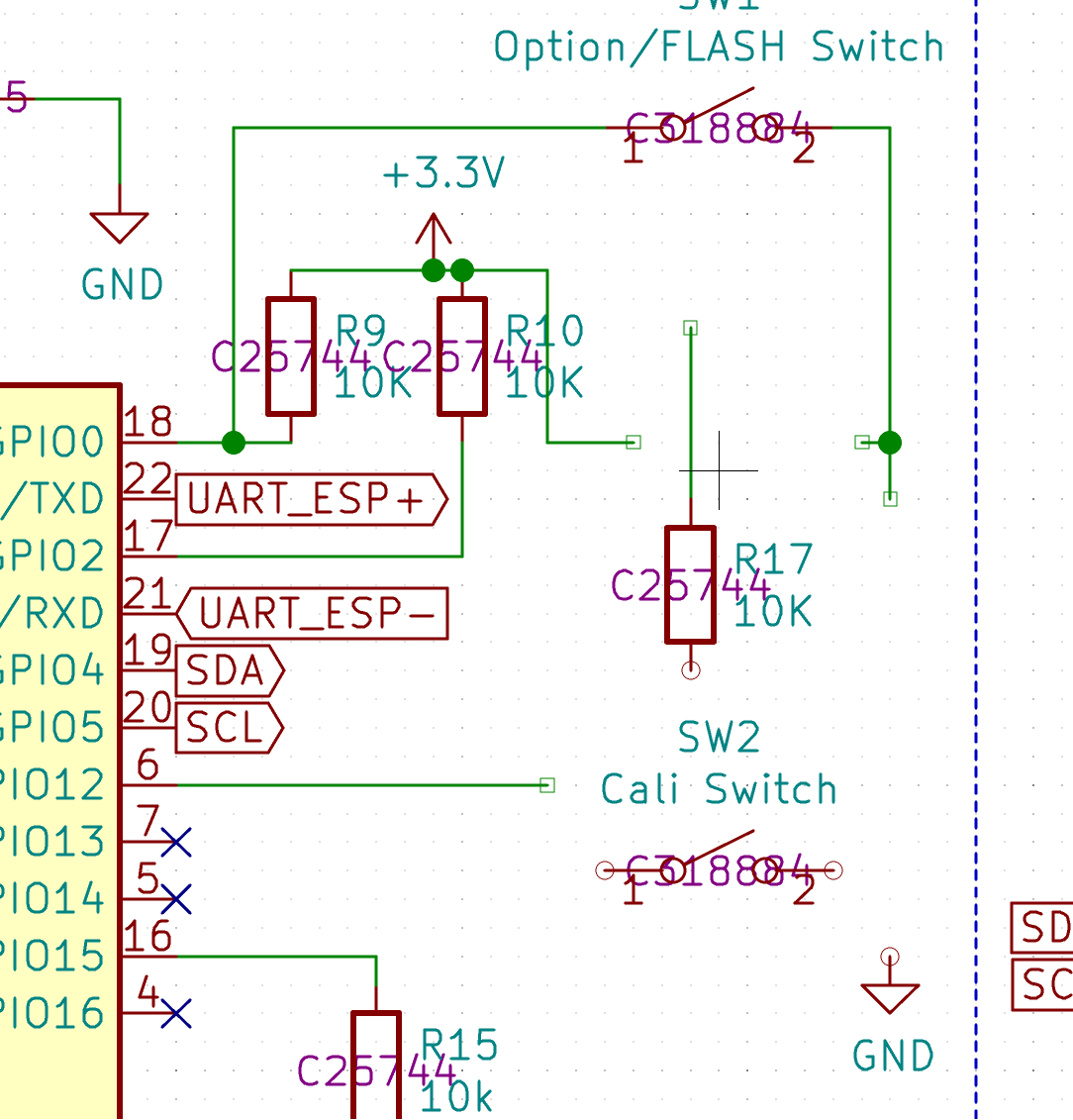 제 PCB에는 옵션/다운로드 모드 진입버튼과 함께 추후 사용을 생각해서 캘리브레이션 스위치를 넣어놨습니다.