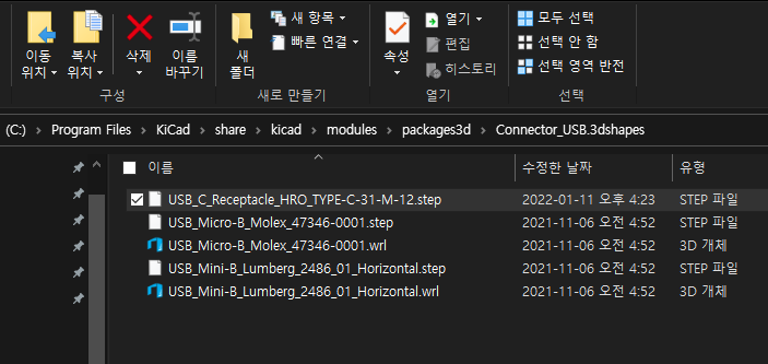 저는 시스템 기본경로인 C:\Program Files\KiCad\share\kicad\modules\packages3d\Connector_USB.3dshapes를 사용했습니다.