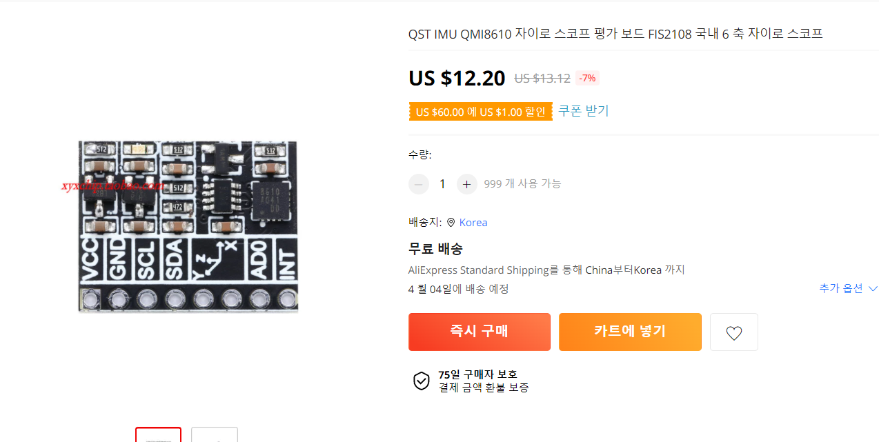 6mdps/√hz로 낮은 자이로 노이즈를 갖고 있어서 써보려고 했는데 센서가 나름 비싸더군요.