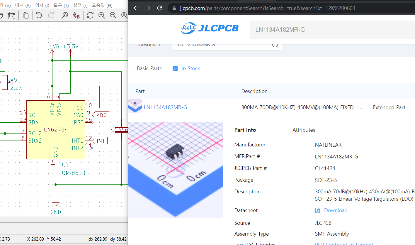 LCSC 파츠 라이브러리에서 사용한 부품을 찾아 부품 번호를 적어주면 됩니다.