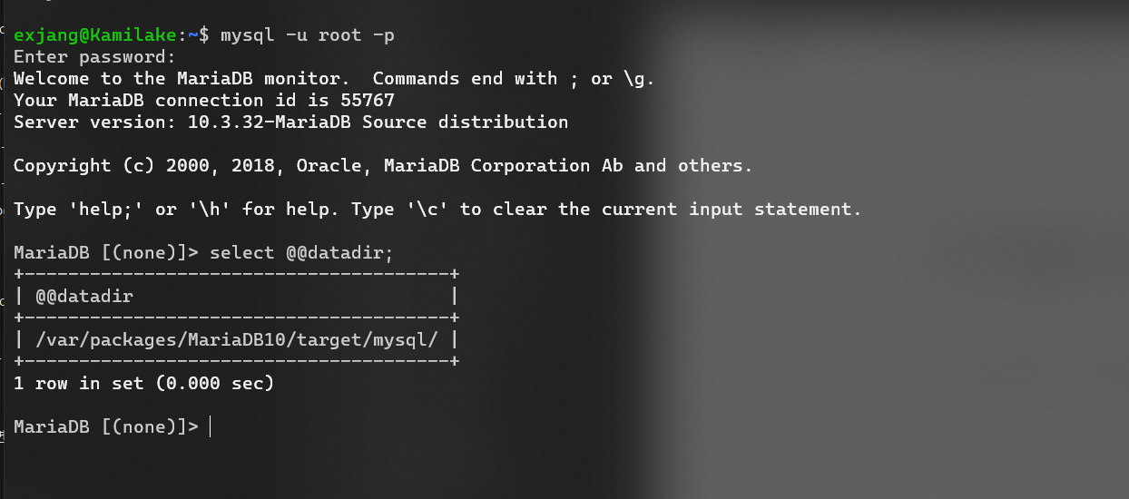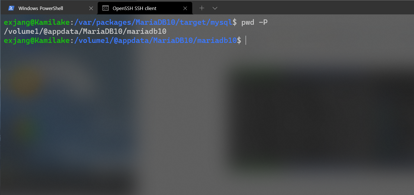 이 경로를 잘 기억해두세요. 저 같은 경우는 /var/packages/MariaDB10/target/mysql/