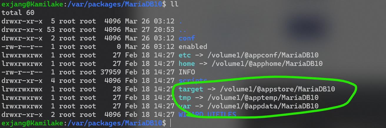 ln -Tfs /volume2/@appstore/MariaDB10 home
