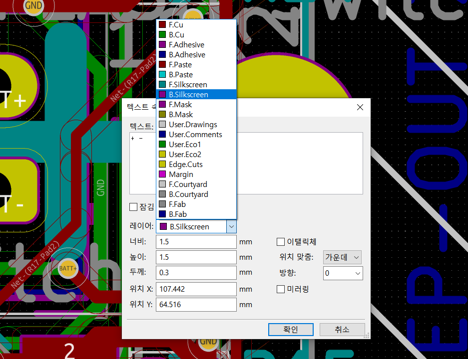 이전 배터리와 같은 커넥터에 다른 극성을 가진 커넥터를 만들었기 때문에 매우 매우 조심해야 합니다. 위처럼 배터리 극성을 실크스크린에 인쇄해두면 잘못 연결하는 일을 줄일 수 있습니다.(배터리 쪽은 전선 색깔로 구분할 수 있습니다)