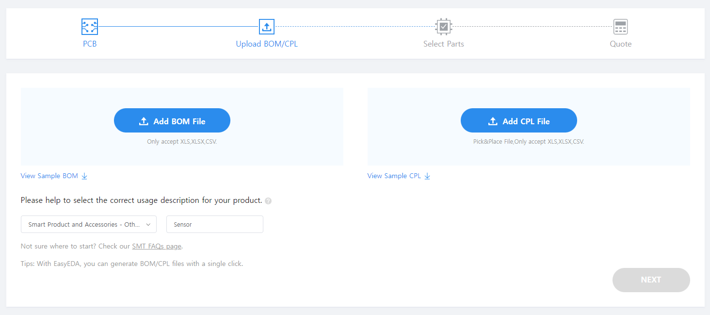 https://cart.jlcpcb.com/quote? 페이지로 이동해서 먼저 위 파일을 올려줍니다.