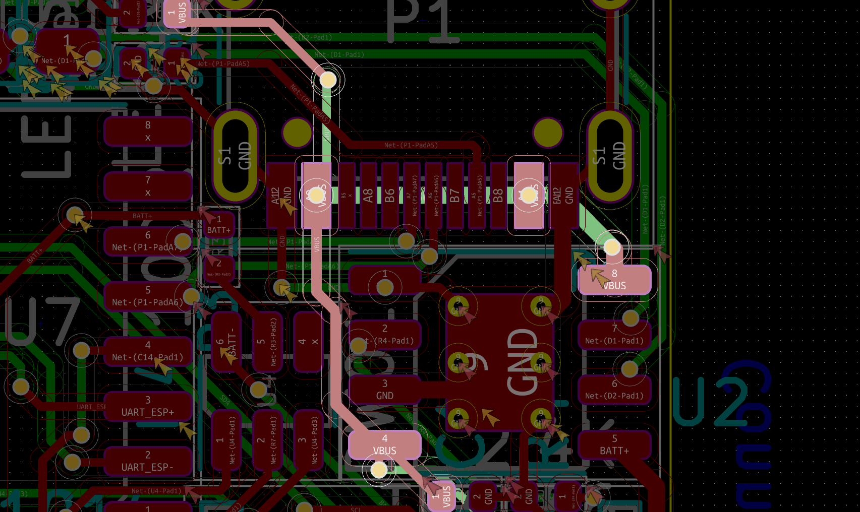 USB에서 오는 VBUS가 TP4056에게 전원을 공급하는데, 저 틈새로는 0.2mm가 간신히 들어가더라구요