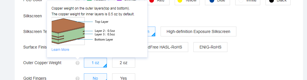 흐르는 전류는 자신이 원하는 대로 입력하면 되고 Thickness는 PCB 제조업체에서 확인할 수 있습니다.