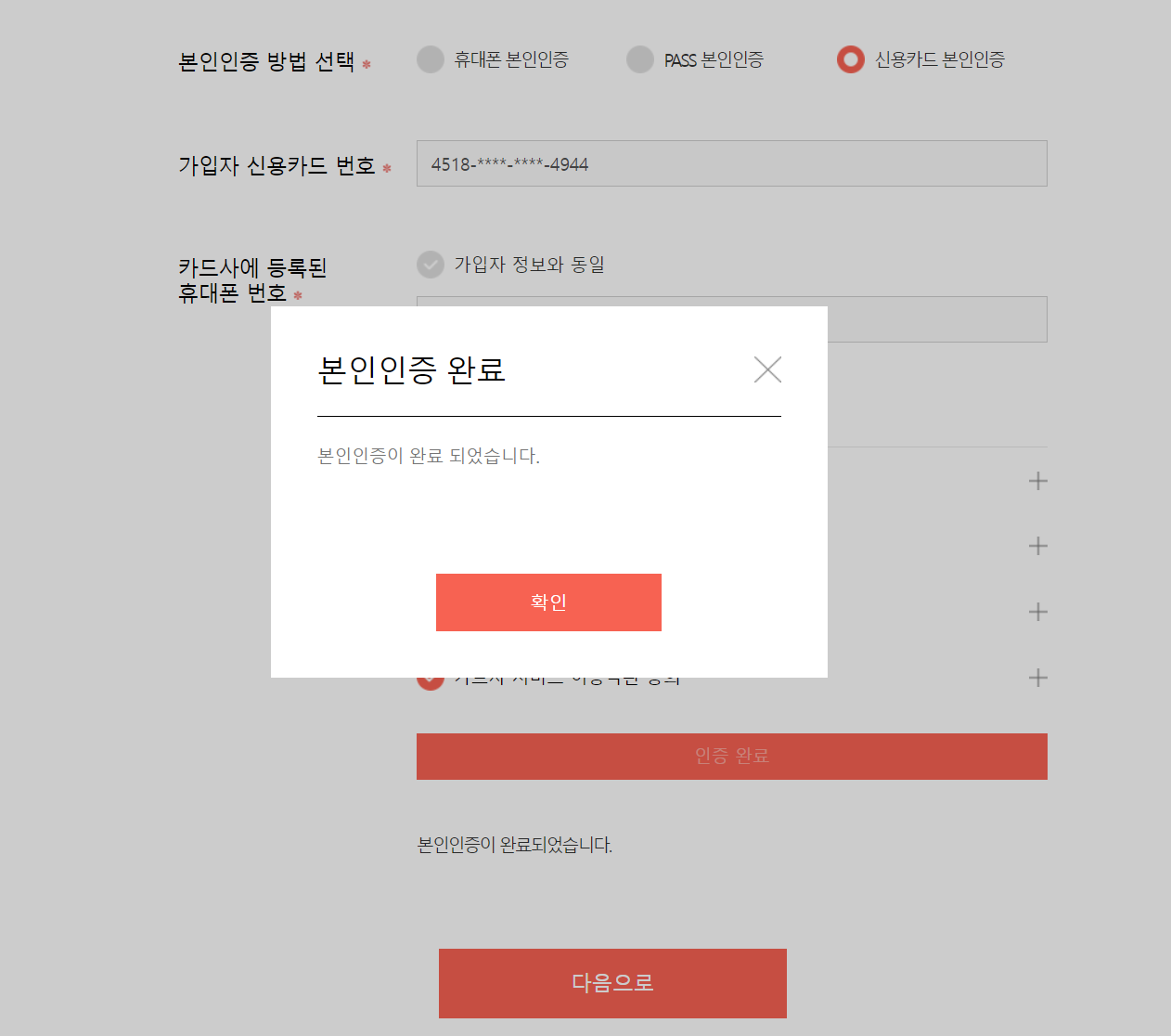 물리 SIM이 장착된 폰이 집에 있어서 휴대폰 본인인증은 할 수 없고