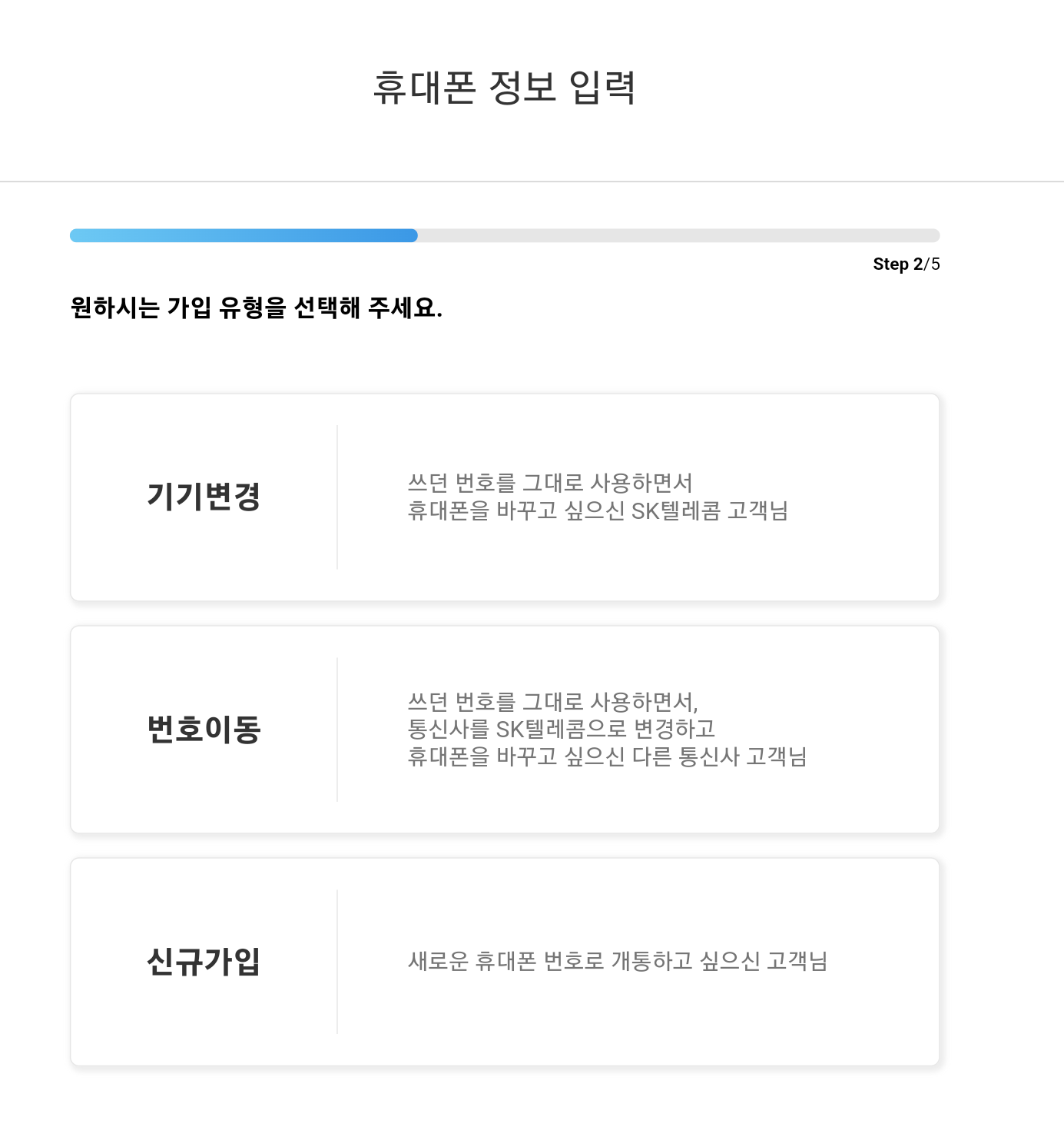 위 사진부터는 하려고 하는 가입방법을 선택해주세요, 저는 기기변경을 선택했어요.