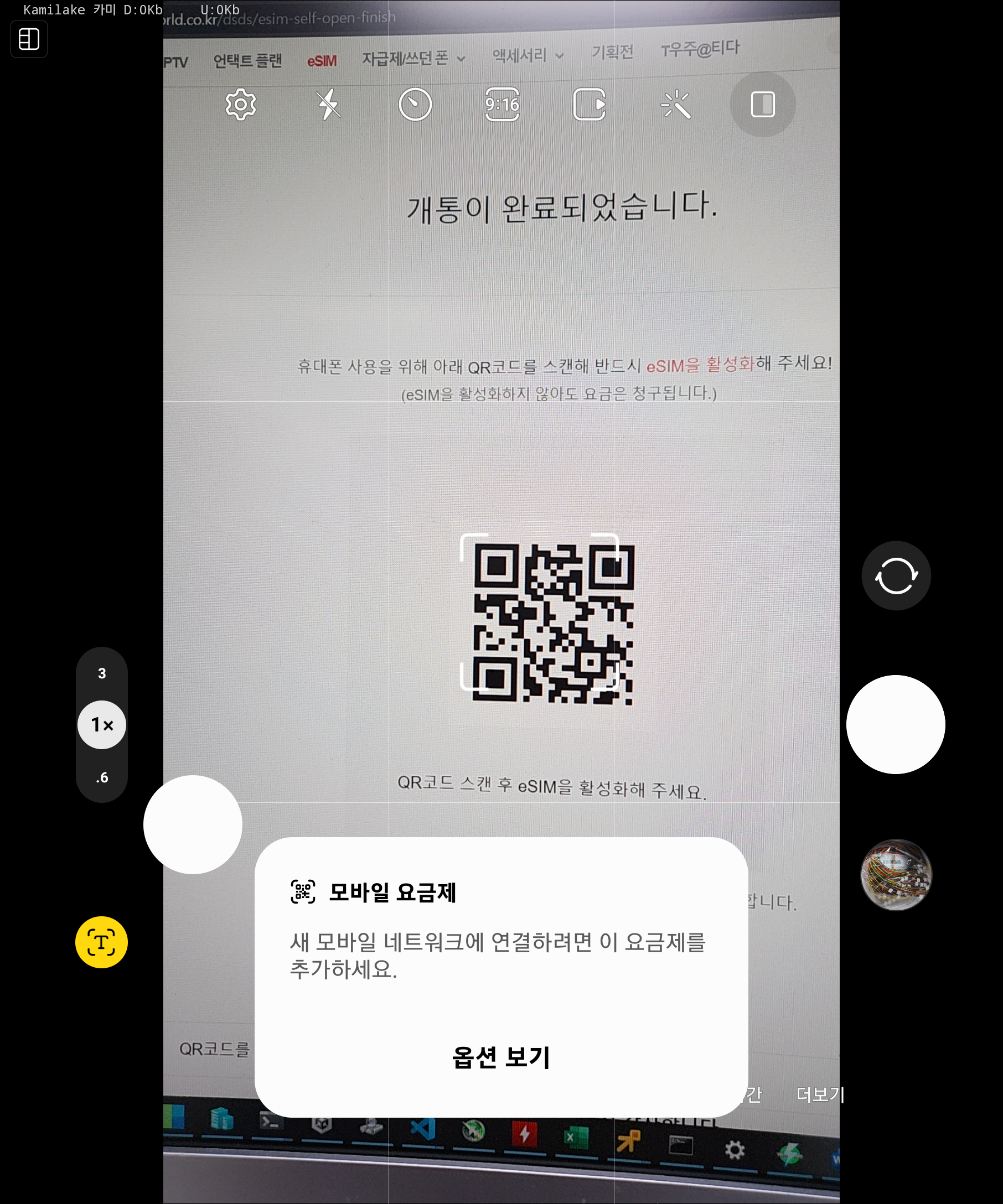 이 QR코드를 삼성 기본 카메라에 비추어 보이시면 아래처럼 모바일 요금제 선택 화면이 표시됩니다.