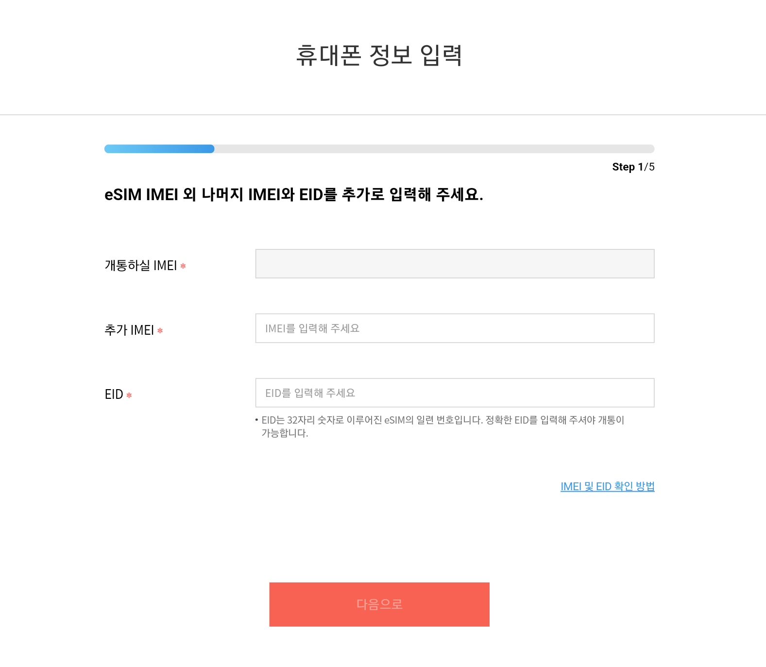 위 사진에서 추가 IMEI는 물리 SIM 슬롯의 IMEI를 입력해주시고, EID는 내 정보-> 상태 탭에 있습니다.