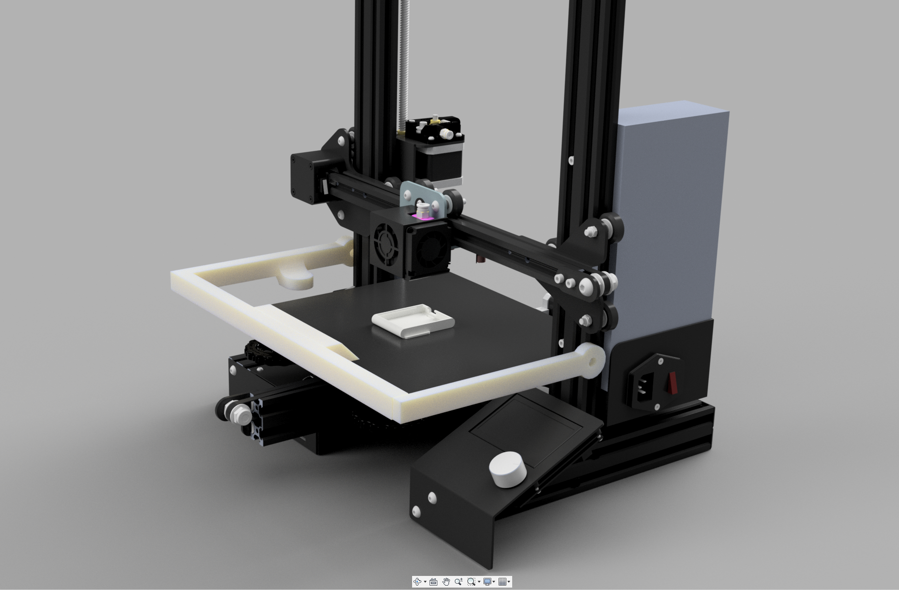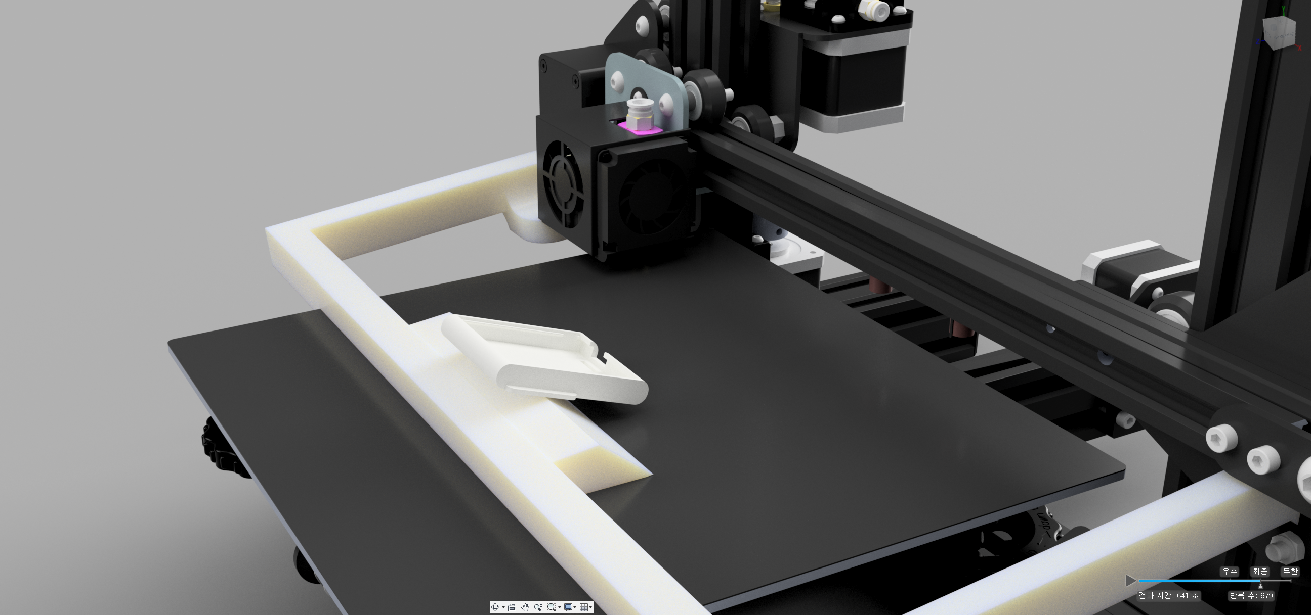 그리고 출력이 끝나면 헤드는 스크래퍼에 달린 스위치를 누르고 스크래퍼는 아래로 살짝 내려가서 베드를 건들게 되는데, 이때 Y축을 앞으로 이동시키면 출력물을 분리할 수 있습니다.