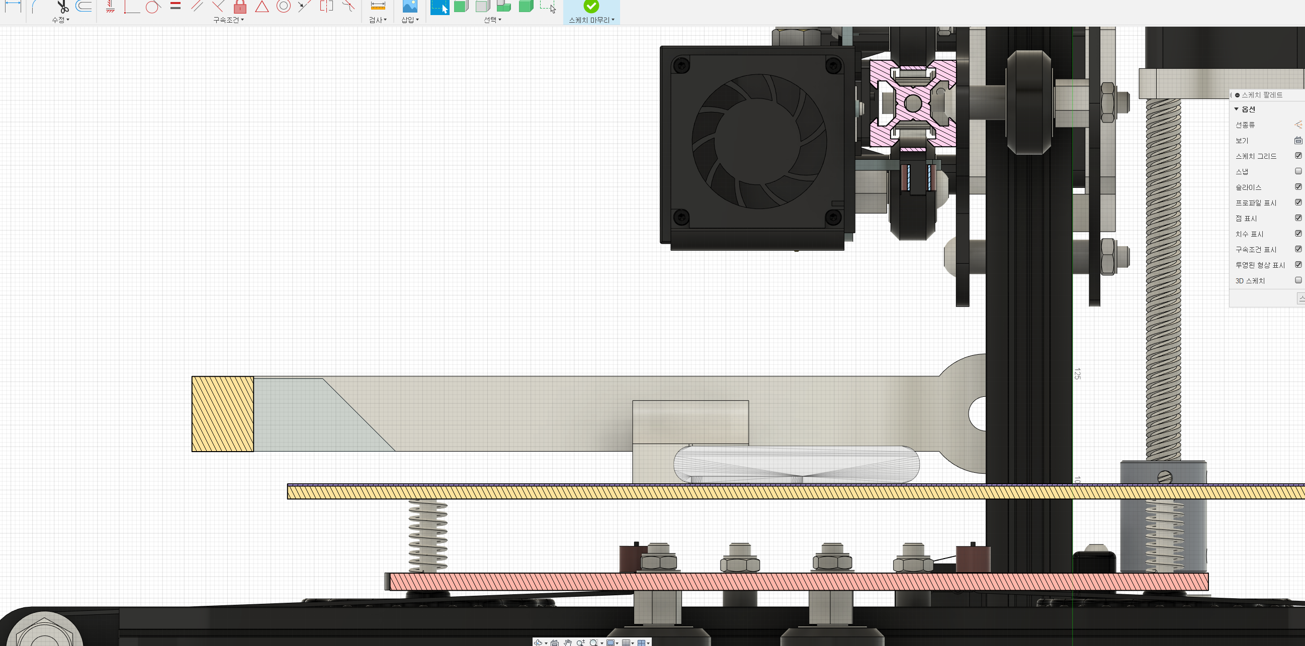 저는 오버행 출력을 위해 이 프린터를 천장에 뒤집어 설치할 예정이기 때문에 따로 저 출력물을 수거하는 장비는 예정에 없습니다. 아래다 통 하나 가져다두면 되겠죠.