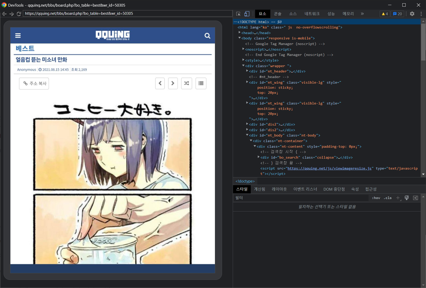 안드로이드 크롬 자체에는 개발자도구가 일단 없습니다.