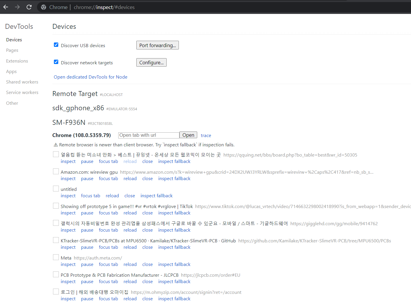 일단 데스크탑 Chrome에서 여기로 들어갑니다 -> chrome://inspect/#devices