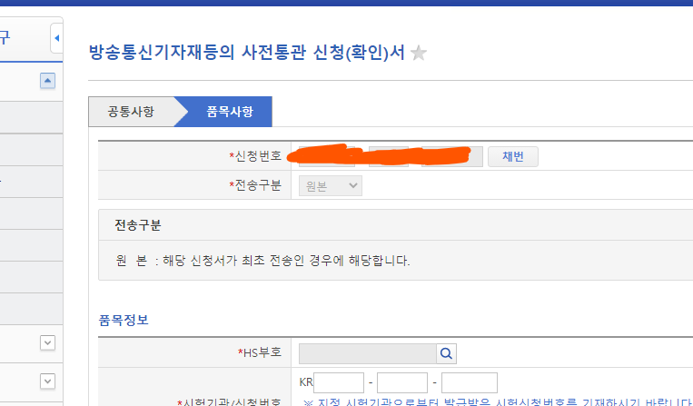 원하는 기관의 요건확인/요건신청 메뉴로 들어가주세요. 통관을 수행한다고 사전통관 또는 기타 메뉴와 헷갈리지 않도록 주의하세요. "통관"이라는 말이 들어간 메뉴들은 죄다 통관이 불가능한 품목을 허가받고 싶을 때 사용하는 신청서더라구요