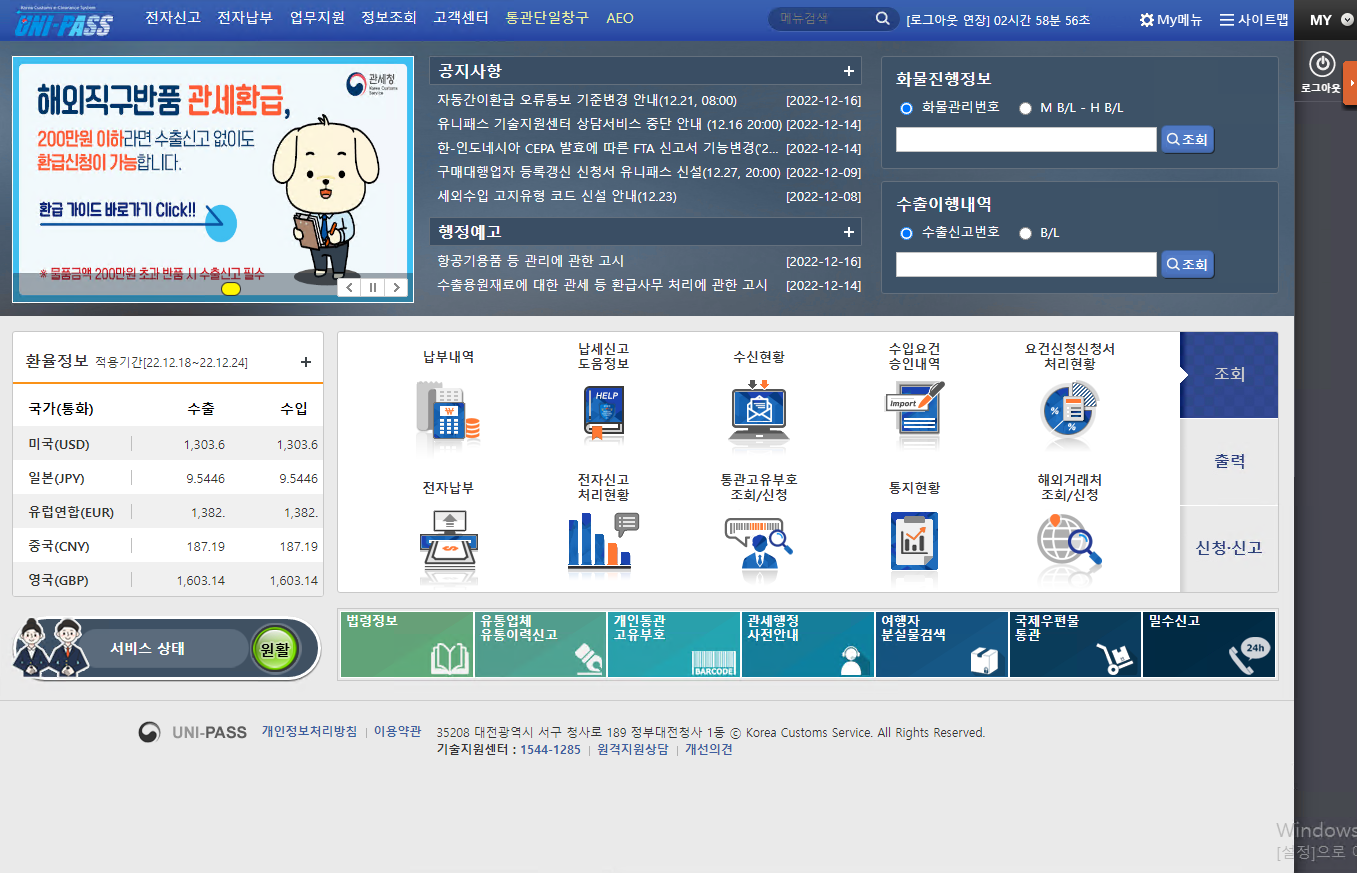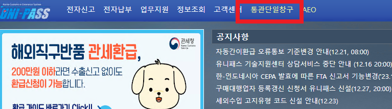먼저 관세청 공홈인 유니패스로 이동해줍니다.