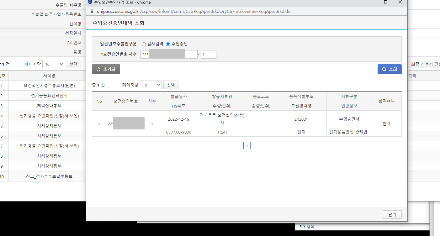 수수료를 내고 새로고침을 몇 번 하다 보면 30초 안에 답변이 돌아오는데, 합격하셨다면 여기 나온 인증번호를 통관 대행업체에게 전달하시면 됩니다.
