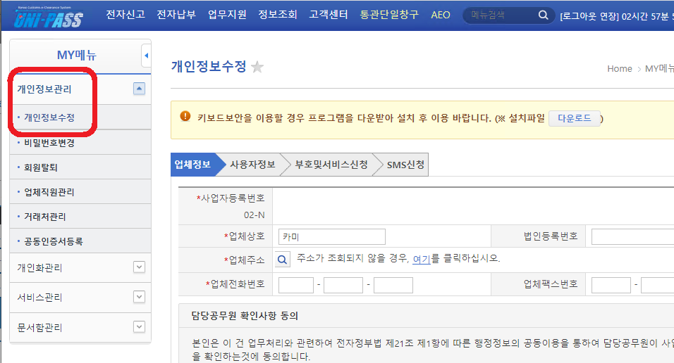 My메뉴->개인정보관리->개인정보수정 페이지로 이동해주세요