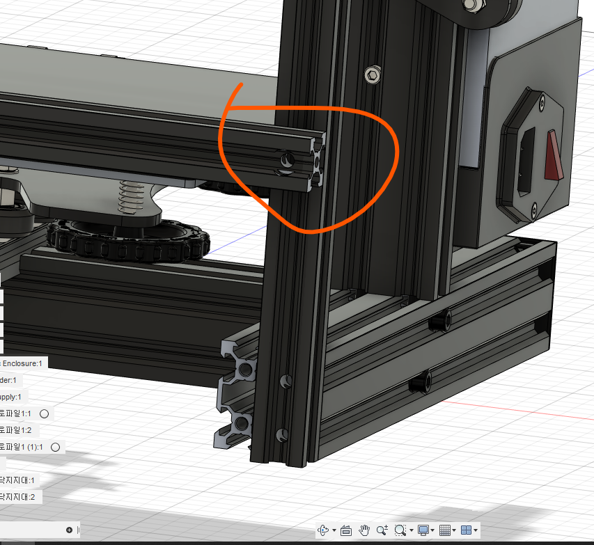 쇼핑몰을 돌다보면 저런 곳에 연결할 수 있는 앵글 브래킷이 있는데.. 저 돈이면 프로파일 홀가공 여섯 번 할 돈인데 구멍 뚫고 말죠.(물론 저것밖에 쓸 수 없는 곳도 있어요.(하단 참조))