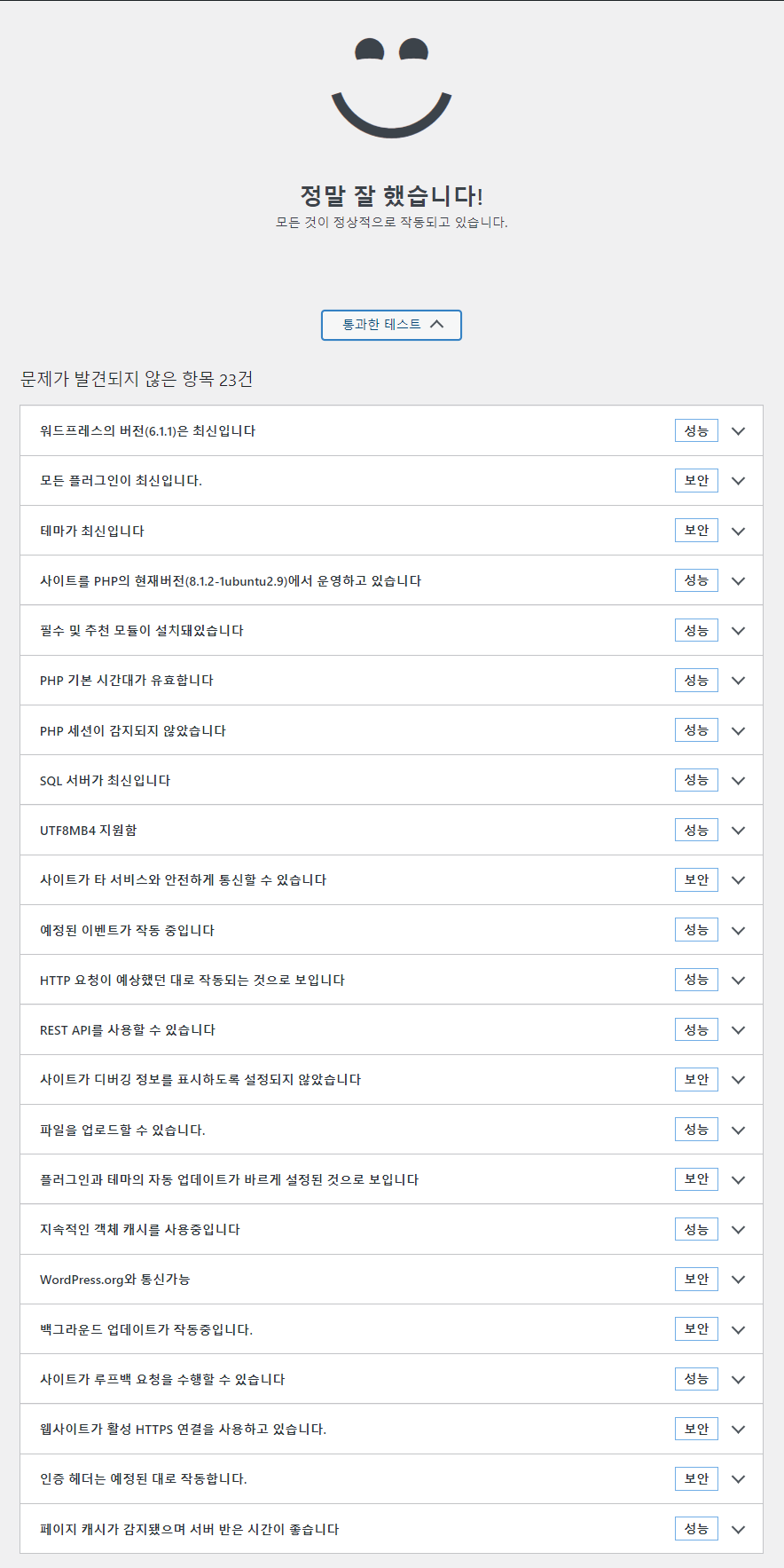 여러분도 Wordpress를 운영중이라면 한번 사이트 건강 진단에서 모든 항목에 통과해보세요!