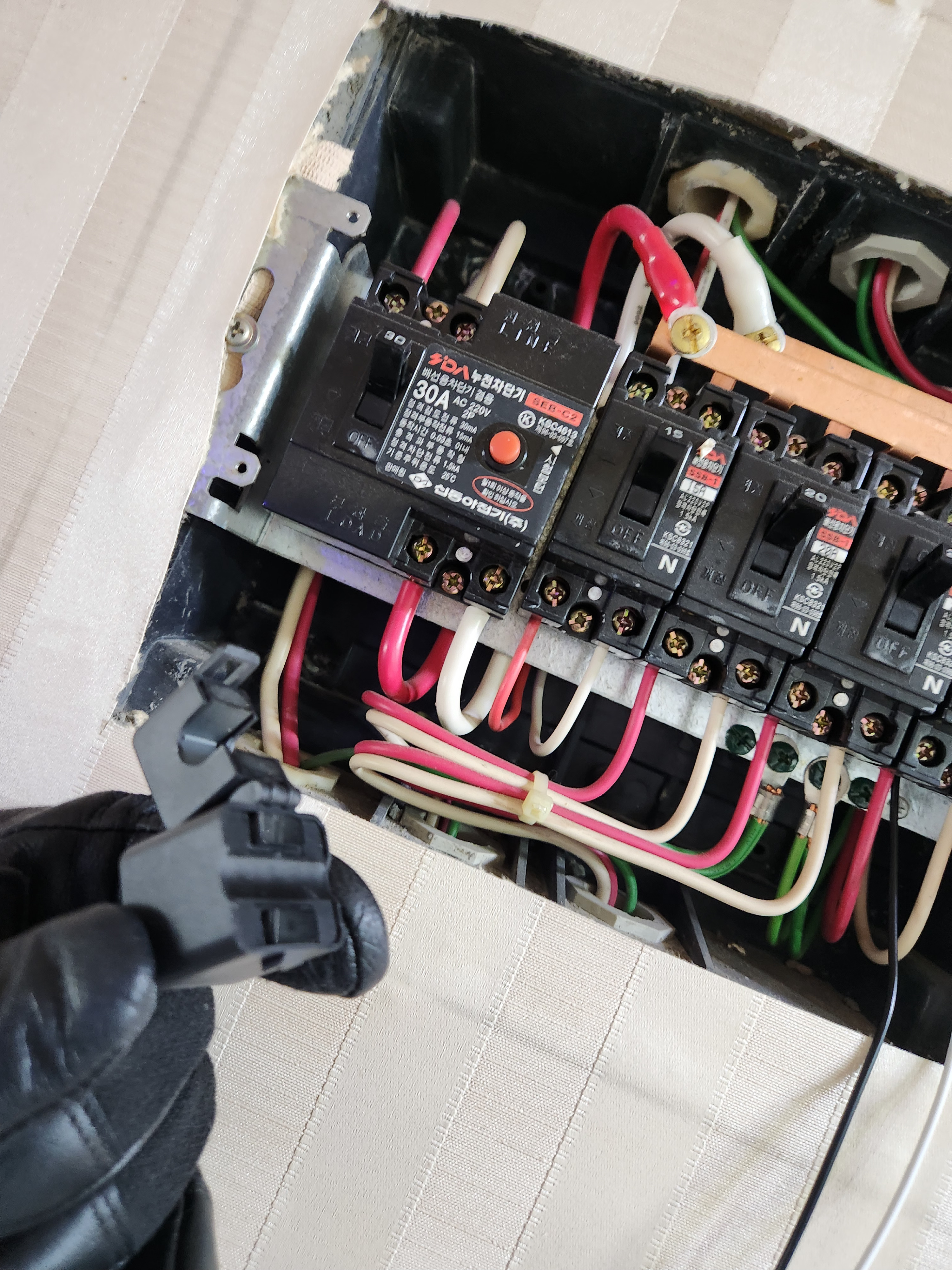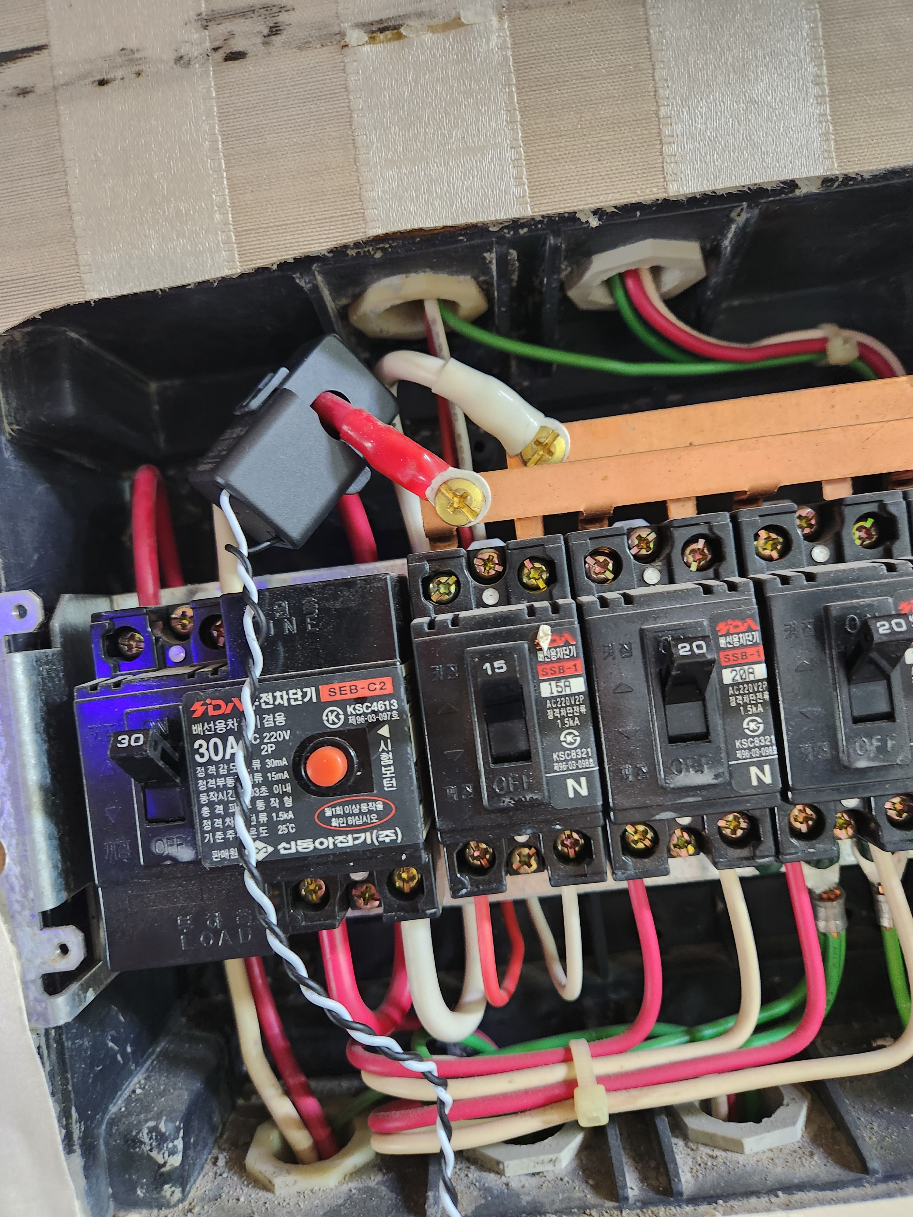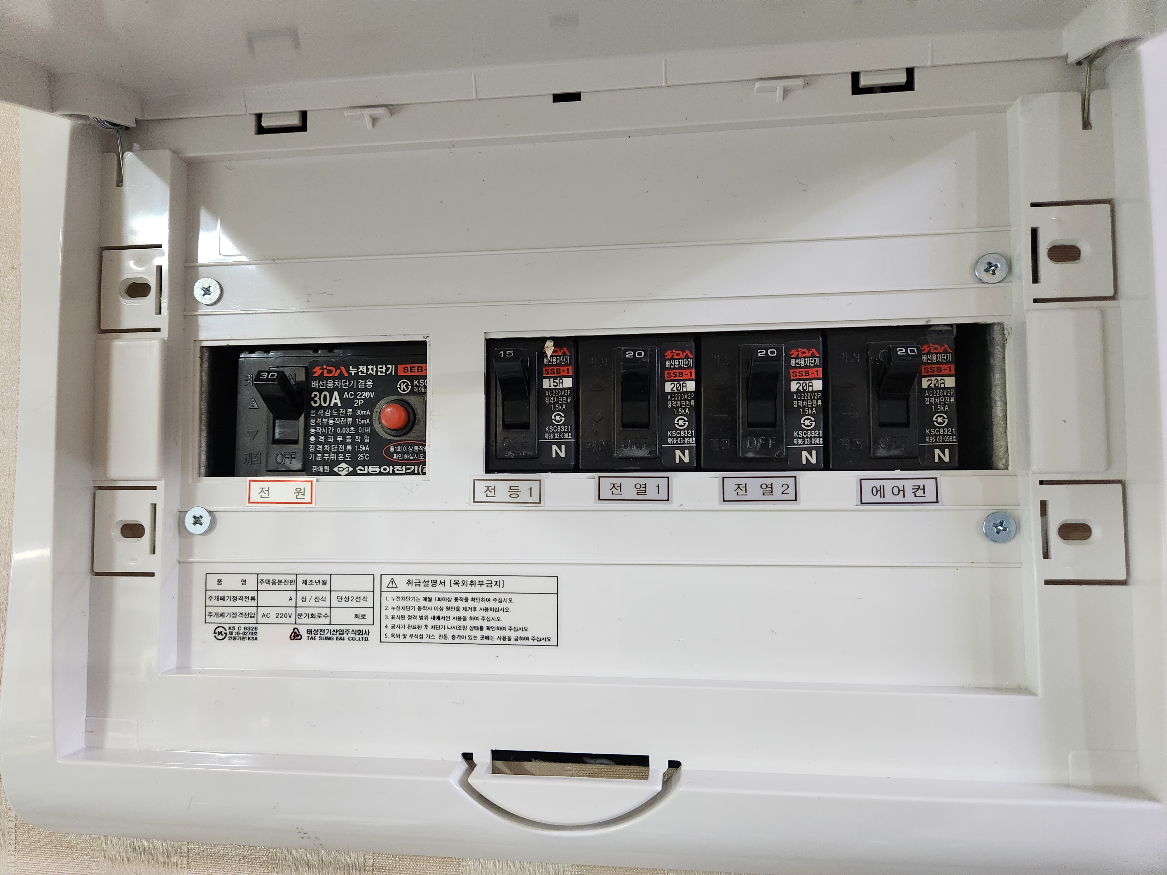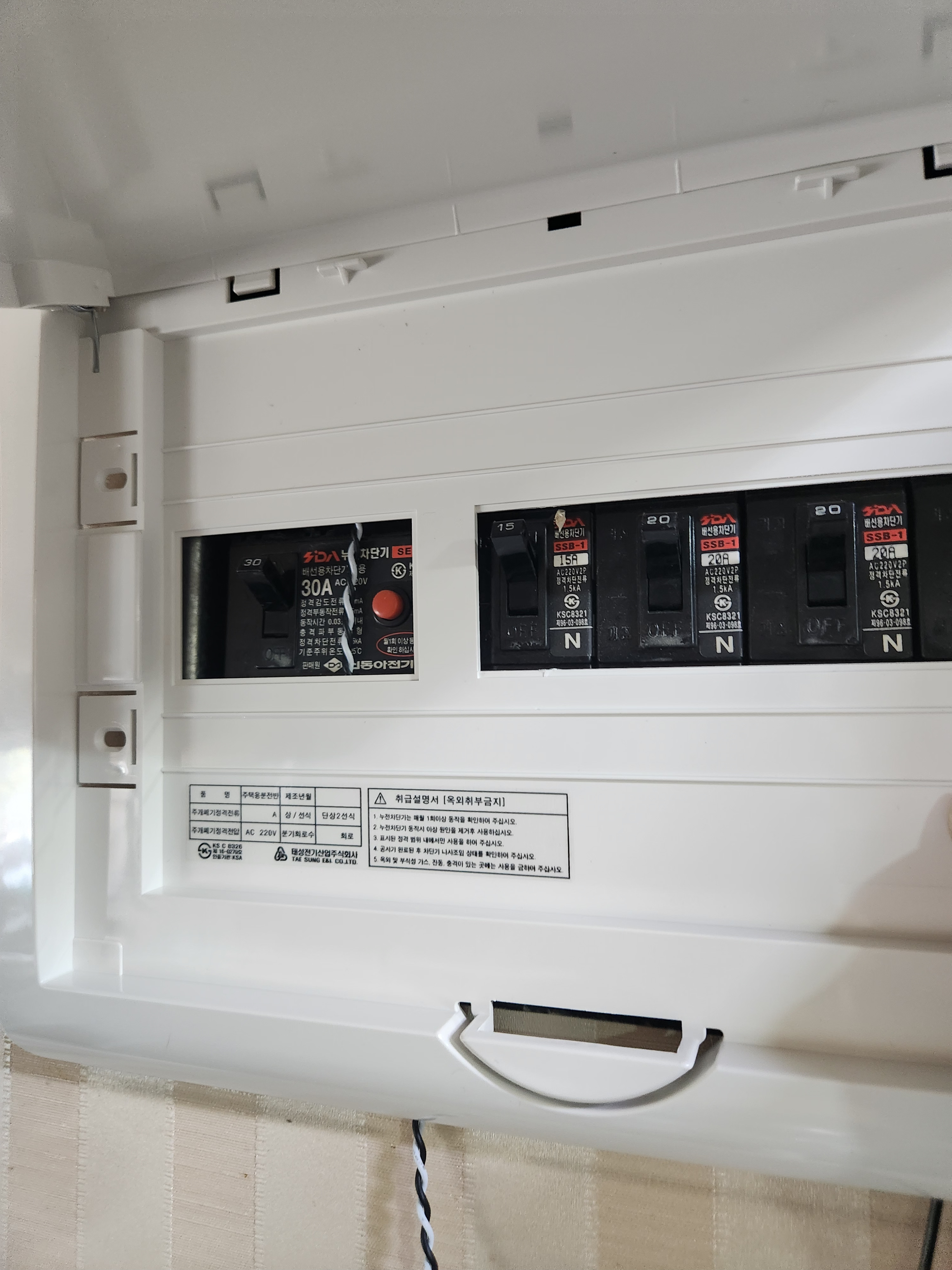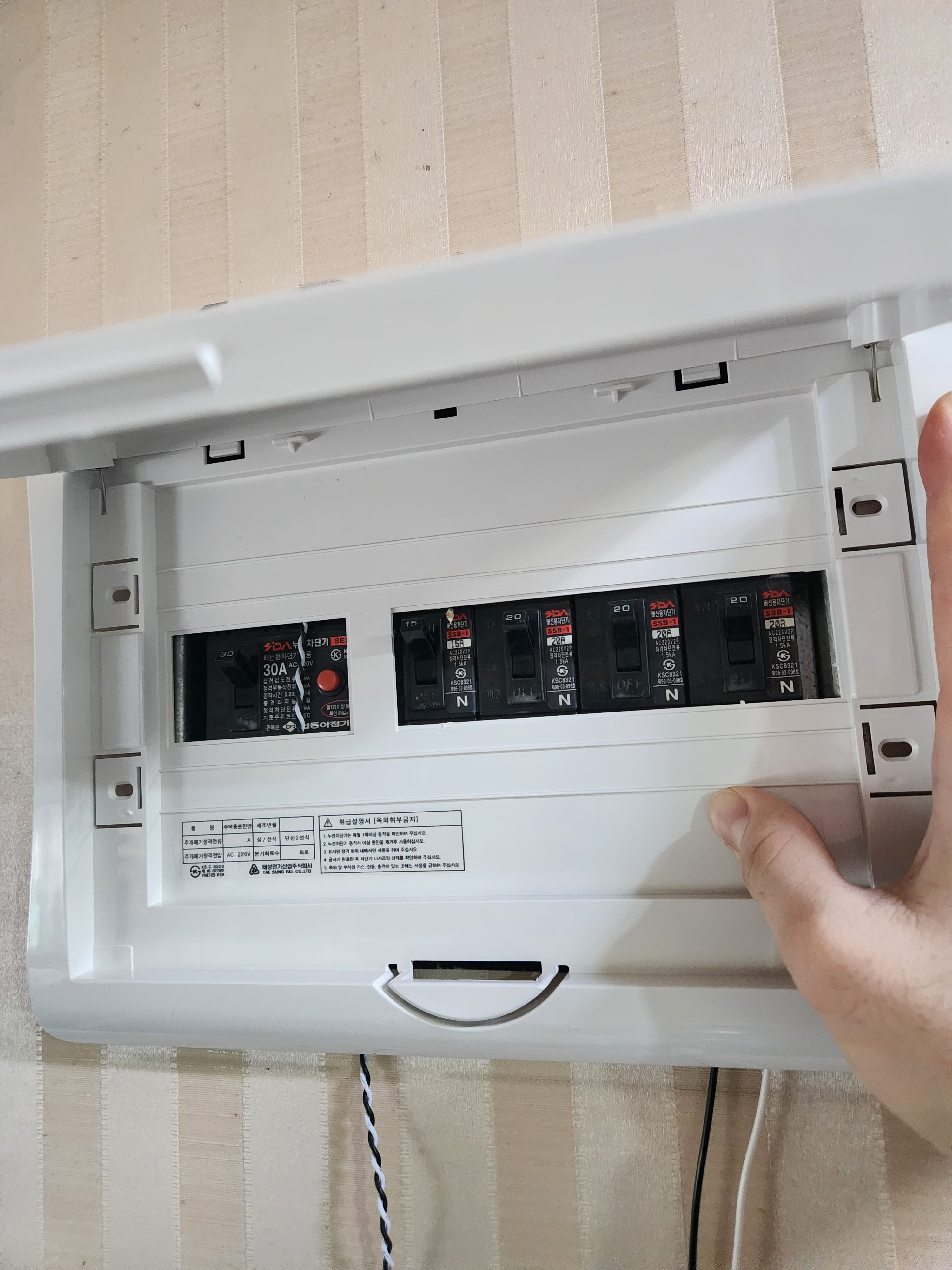 다행히 결합에 성공했습니다. 누전차단기가 올바른 위치에 나와있지 않지만, 작동에는 전혀 문제 없기 때문에 이대로 사용해야겠네요