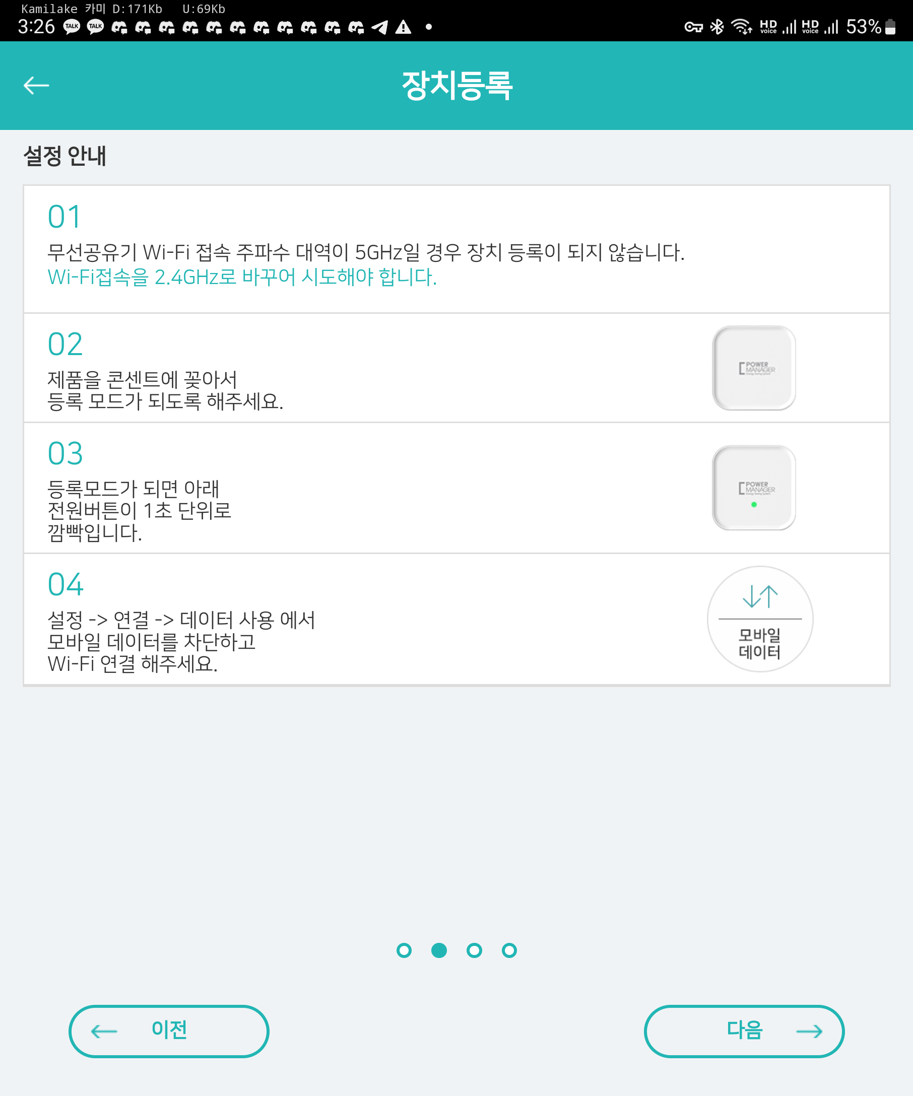 이 전력 측정기도 마찬가지이기 때문에 앱을 켜서 연결할게요.