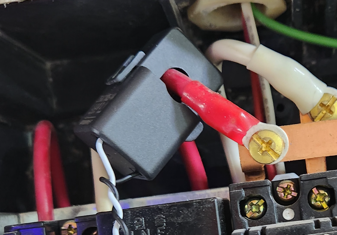 측정기의 코일 사이로 흐르는 전선의 전류를 측정하기 때문에 집안의 모든 전력을 전부 측정하려면 주 전원 차단기에 연결해야 합니다.