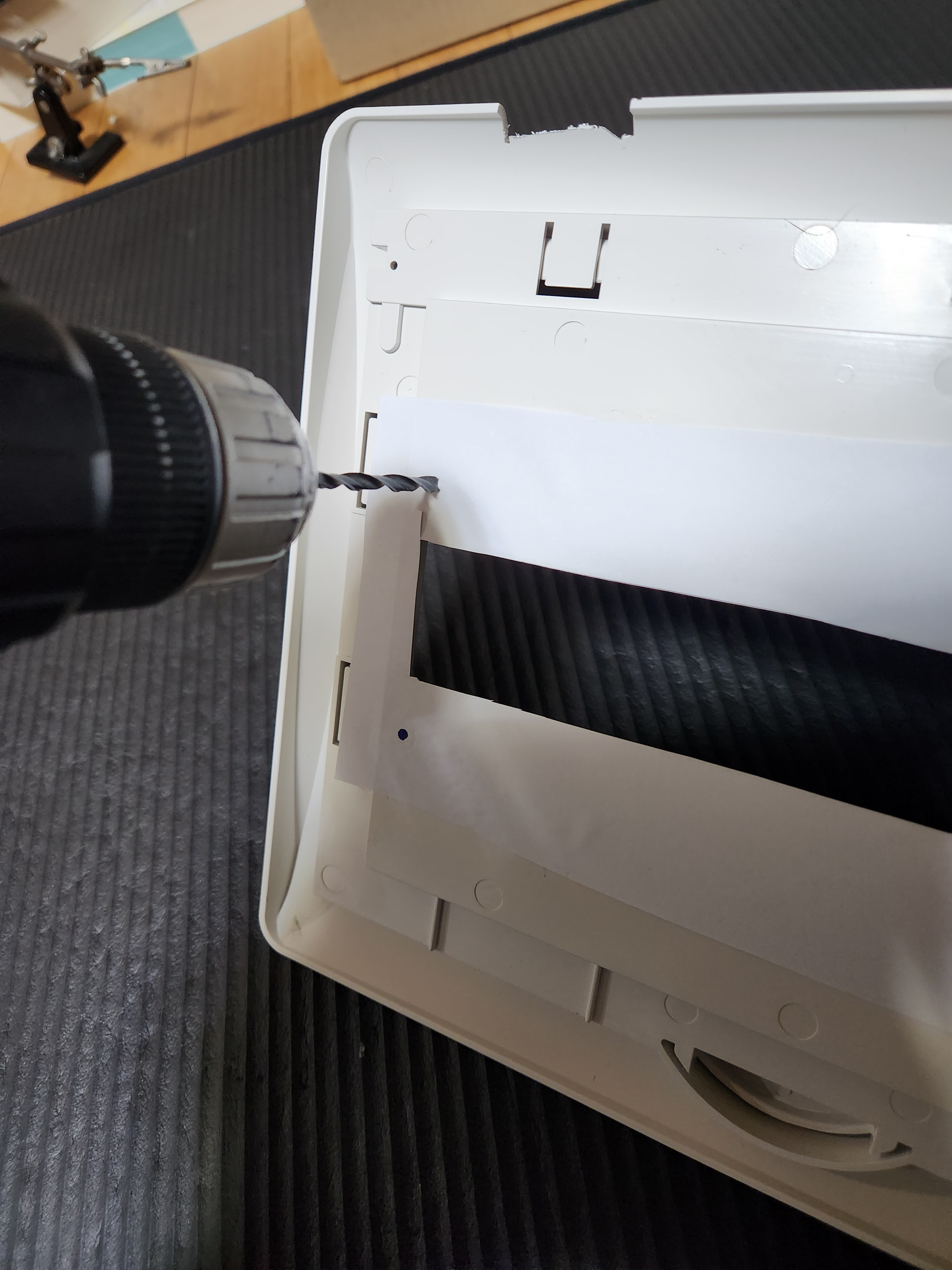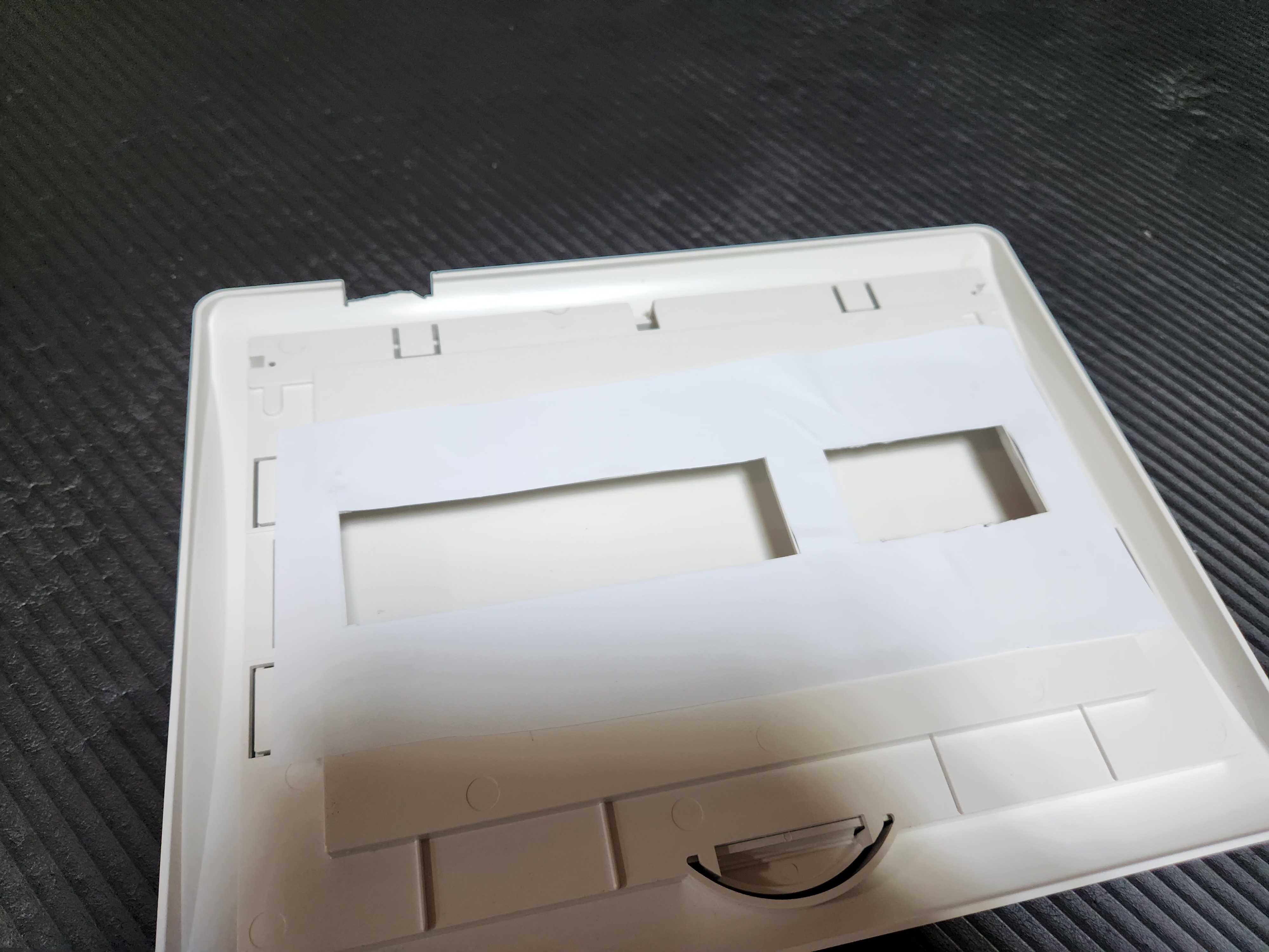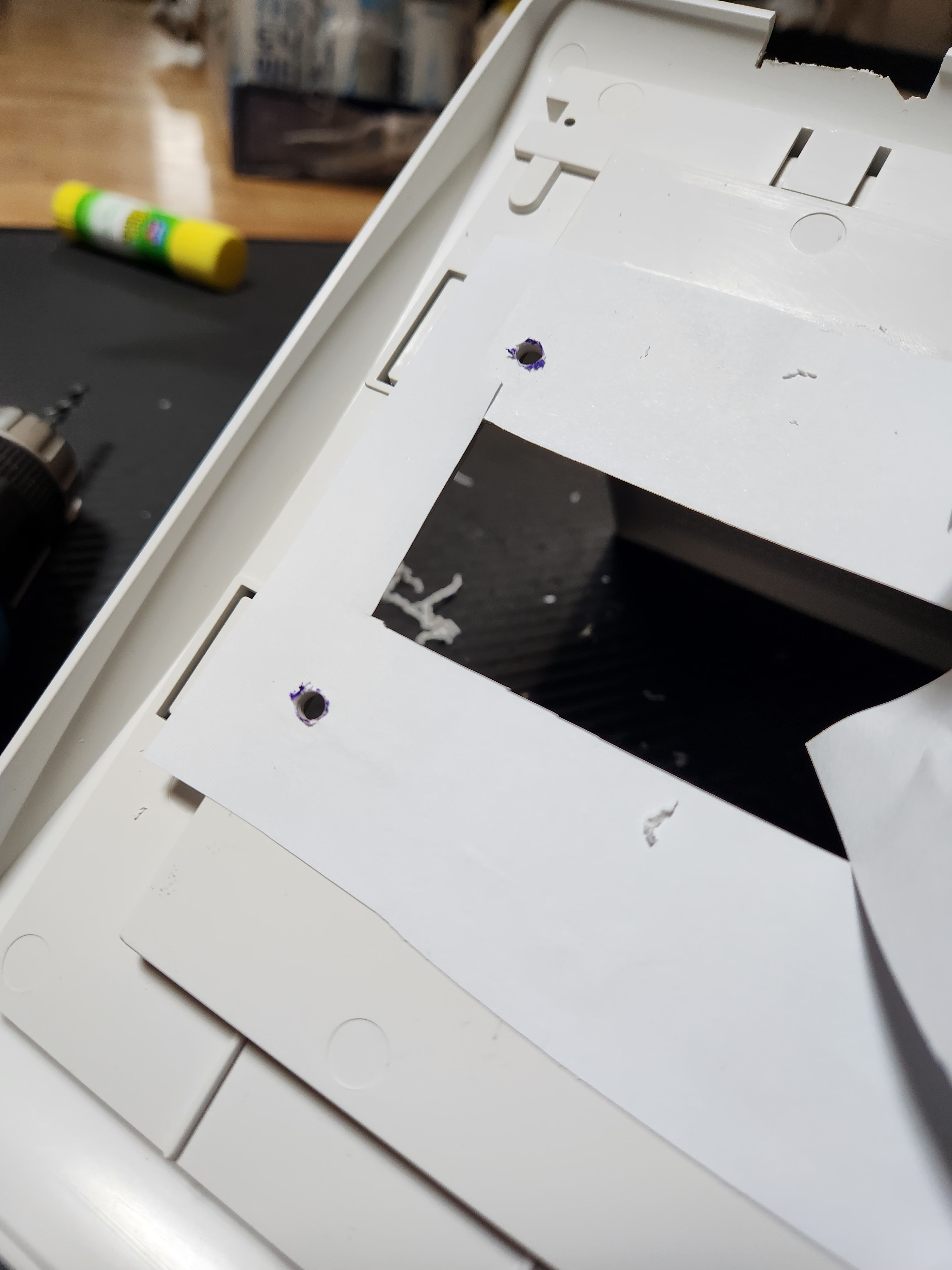 그 다음 타공을 위해 풀로 커버 뒤에 붙였어요.