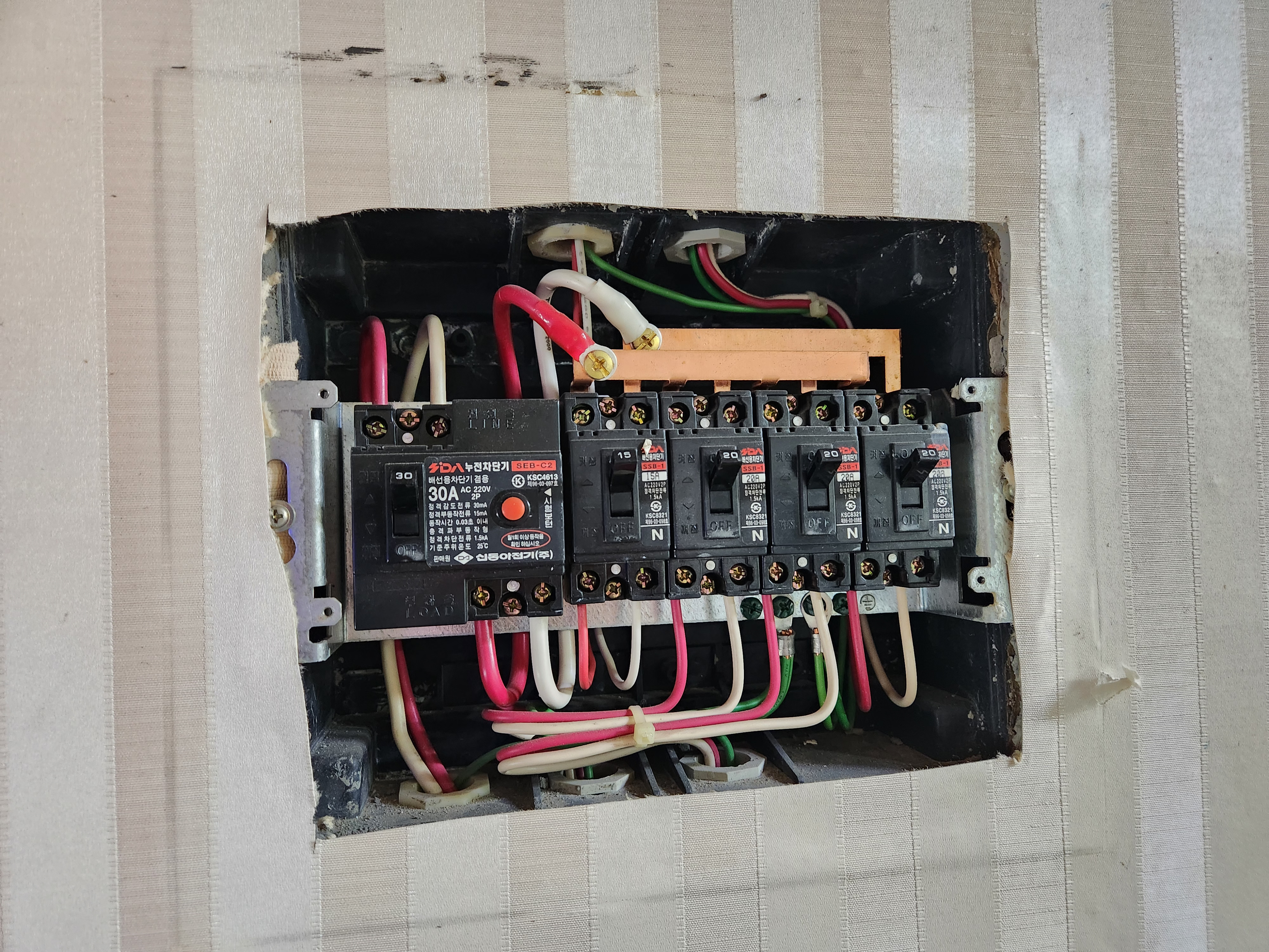 저희 집 인테리어가 날림 공사라 배선도 야매로 되어있을까봐 굉장히 걱정했는데 다행히 이쪽은 손대지 않은 것 같습니다. 중성선과 활성선이 올바른 위치에 라벨링 되어있고 파워매니저 분전반 전력 측정기를 숨길만한 충분한 공간이 있습니다.