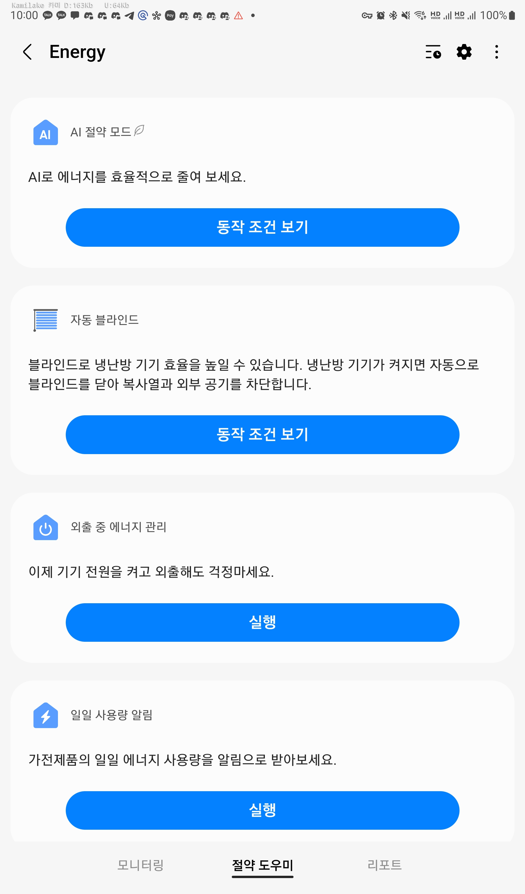 스마트싱스와 구글 홈,KT 기가지니와 같은 서드파티 서비스에 연결할 수 있습니다....만 구글 어시스턴트는 전력 측정 컴포넌트 타일이 없어서 할 수 있는 게 아무것도 없고 저는 기가 지니를 사용하지 않기 때문에 스마트싱스에 연결하는 게 전부였습니다.