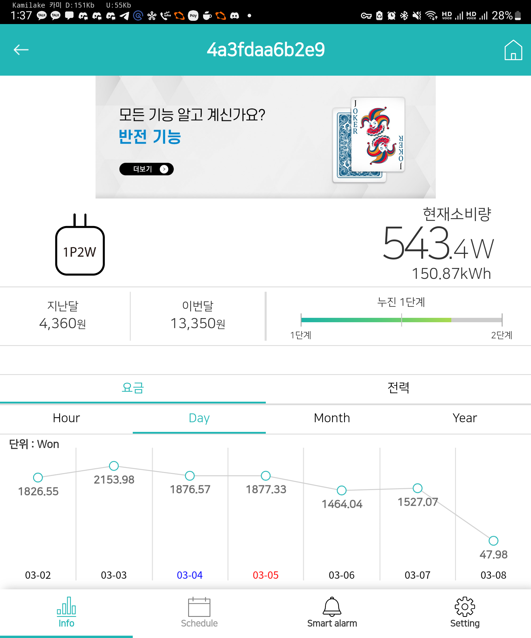 에어컨도 안 켜놨기에 냉방까지 한다면 어마무시한 전력을 쓰고 있었다는 말이겠죠. 에어컨과 헤어드라이어 하나만 더 켜면 10kW도 넘을 기세더라구요.