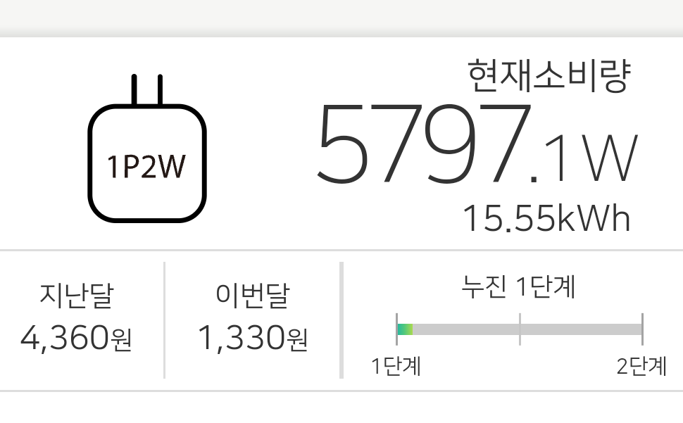 평소 생활하면서 전력 사용량을 측정해봤는데 적게 쓸 때에는 500W, 많이 쓸 때에는 6000W 가까이 쓰고 있었습니다.