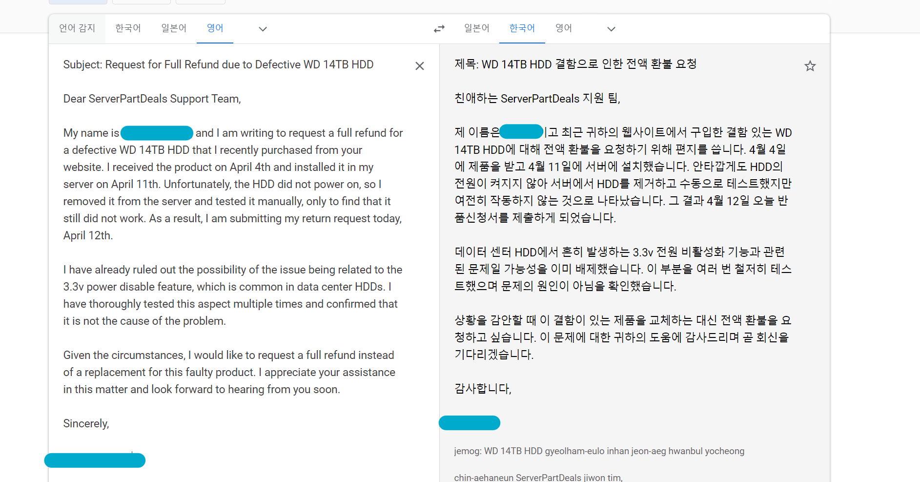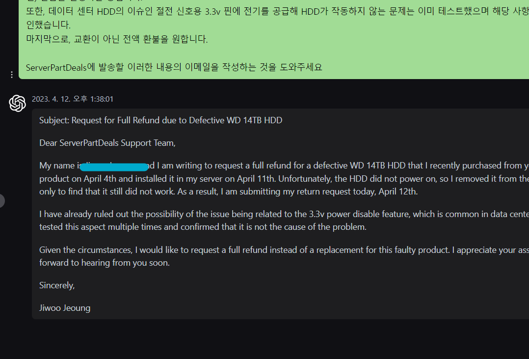 오랜만입니다. 최근에 129불 주고 구매한 14테라 하드가 전원을 연결해도 부팅이 되지 않는 결함품이어서 환불을 신청해보려 합니다.