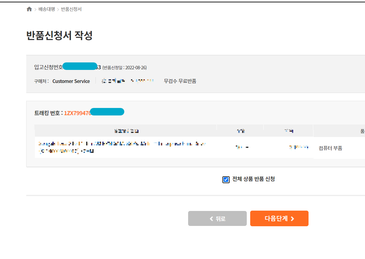 반품신청서 작성하기