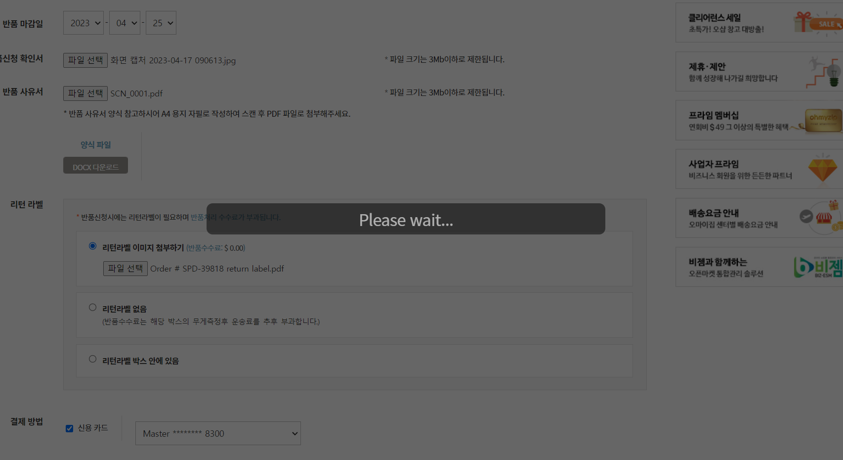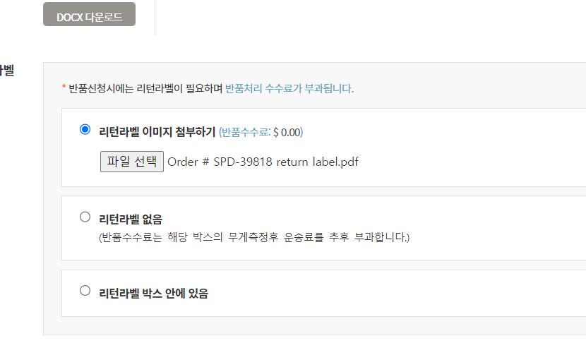 그 다음은 아까 받은 리턴라벨 이미지를 첨부합니다