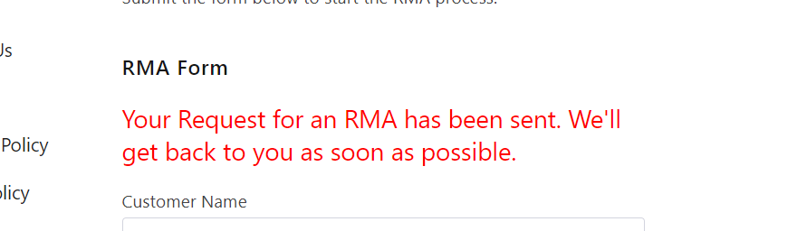 Submit the form below to start the RMA process.
