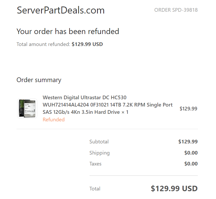 이로서 돈한푼 안 들이고 HDD를 무사히 환불했습니다. 서버파트딜 HDD가 저렴하고 저는 14TB가 여전히 필요하기에 추가로 저 회사에서 구매할지, 다른 딜을 기다릴지 엄청 고민되지만 지금 당장 용량이 매우 부족한 게 아니니 조금만 더 기다려보기로 했습니다.