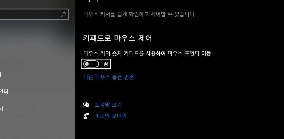 2. "키패드로 마우스 제어" 를 켜세요