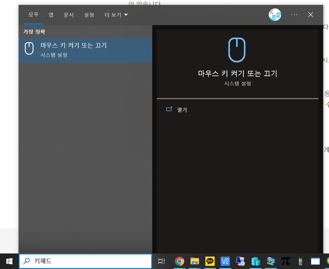 윈도우 키 -> "키패드" -> Tab -> 방향키 아래 -> Enter
