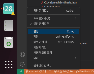 먼저, GUI의 설정 메뉴(Ctrl+,) 또는 settings.json 파일로 이동합니다.