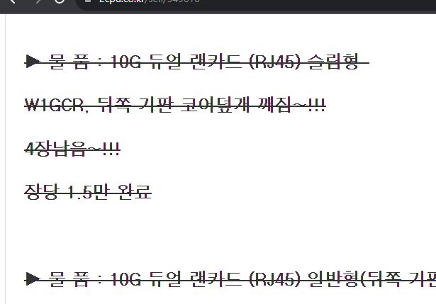 당장 다나와 최저가를 검색해도 수십만원이 넘어가는 고가의 랜카드인데 장당 1.5만원에 판다니 안 살 수가 없었습니다.