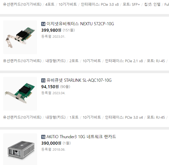 하지만 10기가비트 랜카드가 1.5만원이라니 이걸 구매하지 않을 수가 없습니다.